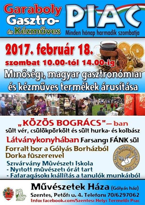 Friss, helyben készülő disznótorossal, farsangi fánkkal, házi rétessel, forralt borral, termelői élelmiszerekkel, kézműves termékekkel, kiegészítő kulturális- és gyermekprogramokkal várjuk februárban is a 3. szombaton látogatóinkat. Egy minőségi program az egész családnak!
