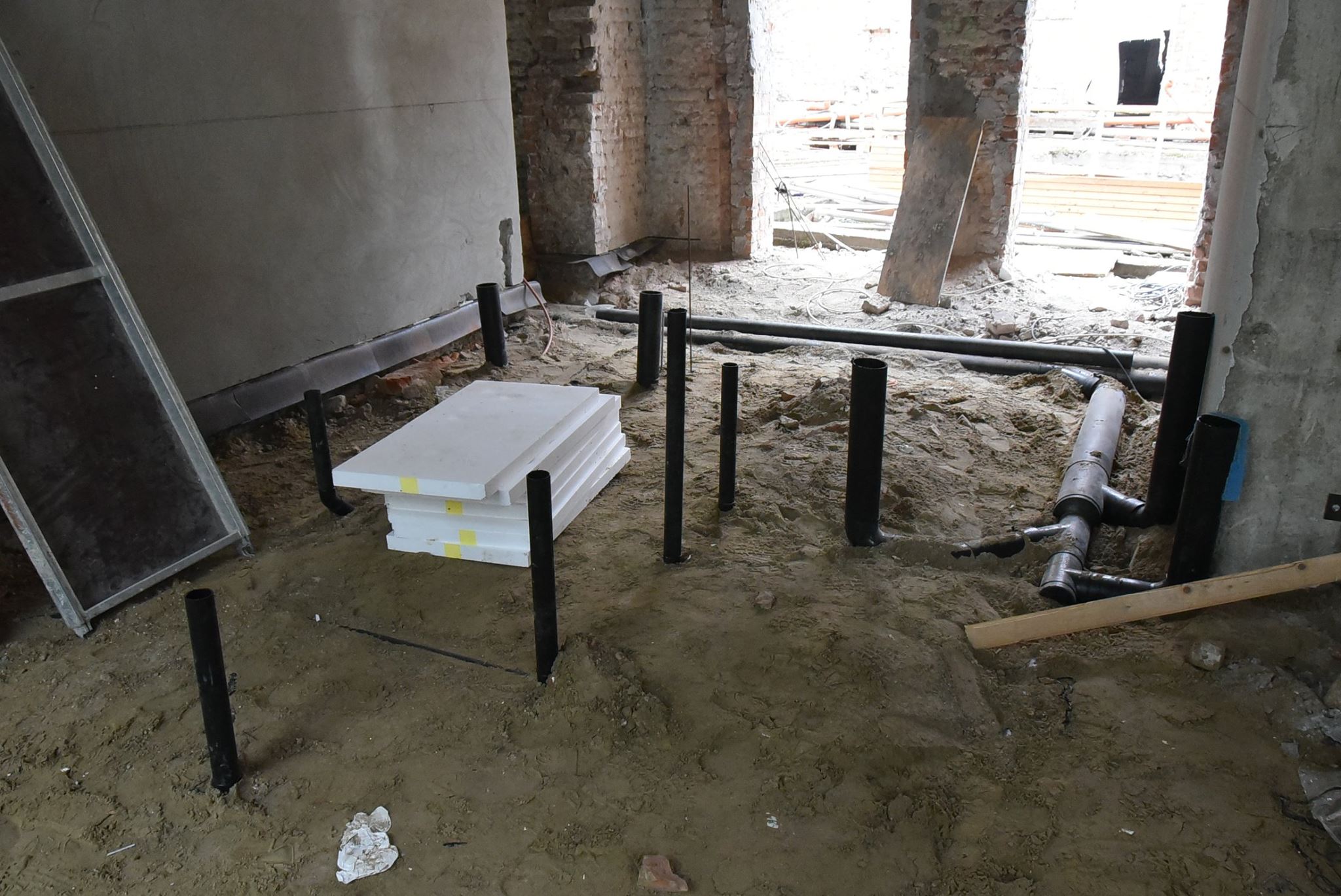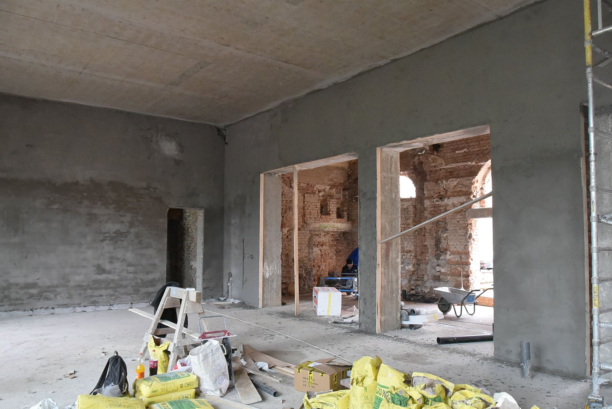 Elkészült a 88 férőhelyes Szecessziós Kávéház és Kamaraterem beton alapja, így át adták a területet a vakolóknak. Gépi felhordású vakolással gyorsan haladnak, valamint közben dolgoznak a villanyszerelők is.
