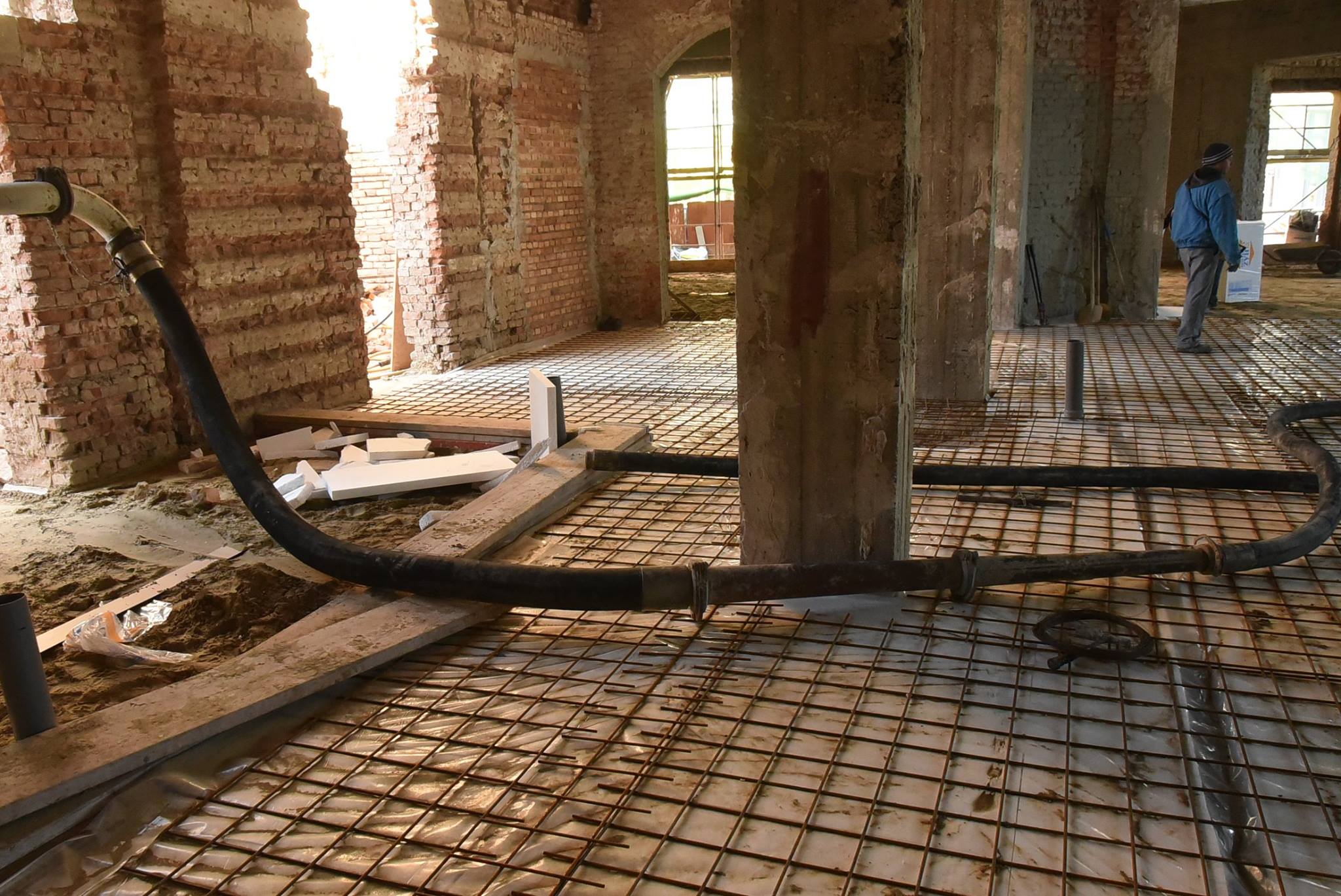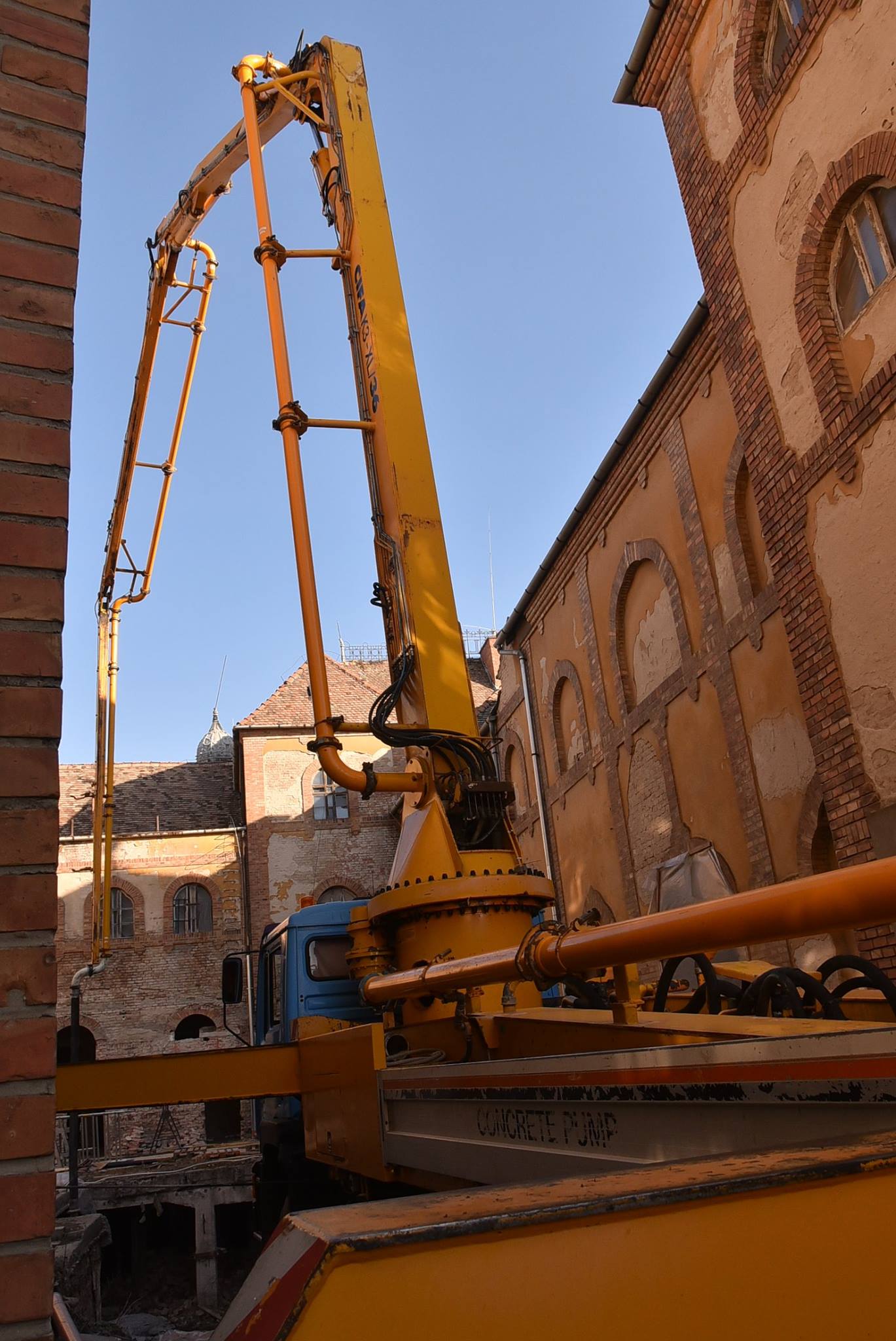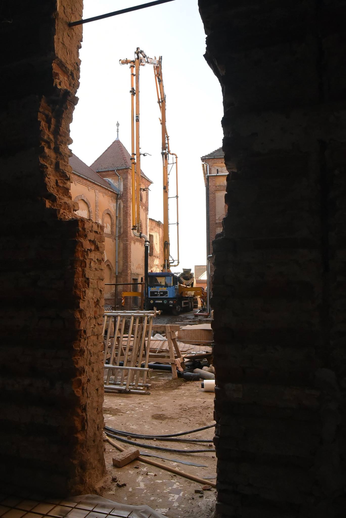 Elkészült a Szentes Szecessziós Ház csatornázási munkálata melynek nyomáspróbája is sikeresen megtörtént. Sok-sok köbméter homokkal talajkiegyenlítés után 5 cm-es hungarocell szigetelésre betonhálót helyeztek, mely adja az alapot a szerelőbetonnak. Azért, hogy a Kossuth és Petőfi utcák forgalmát ne akadályozza az építkezés, egy olyan betonpumpát alkalmaznak, mely 30 métert is képes áthidalni. Első körben 16 m3 betont terítettek szét, mely a hasznos alapterület egyharmadára futotta.