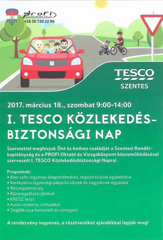 Szentesen a TESCO áruház parkolójában rendezik meg az -ot a Szentesi Rendőrkapitányság és a PROFI Oktató és Vizsgaközpont közreműködésével.