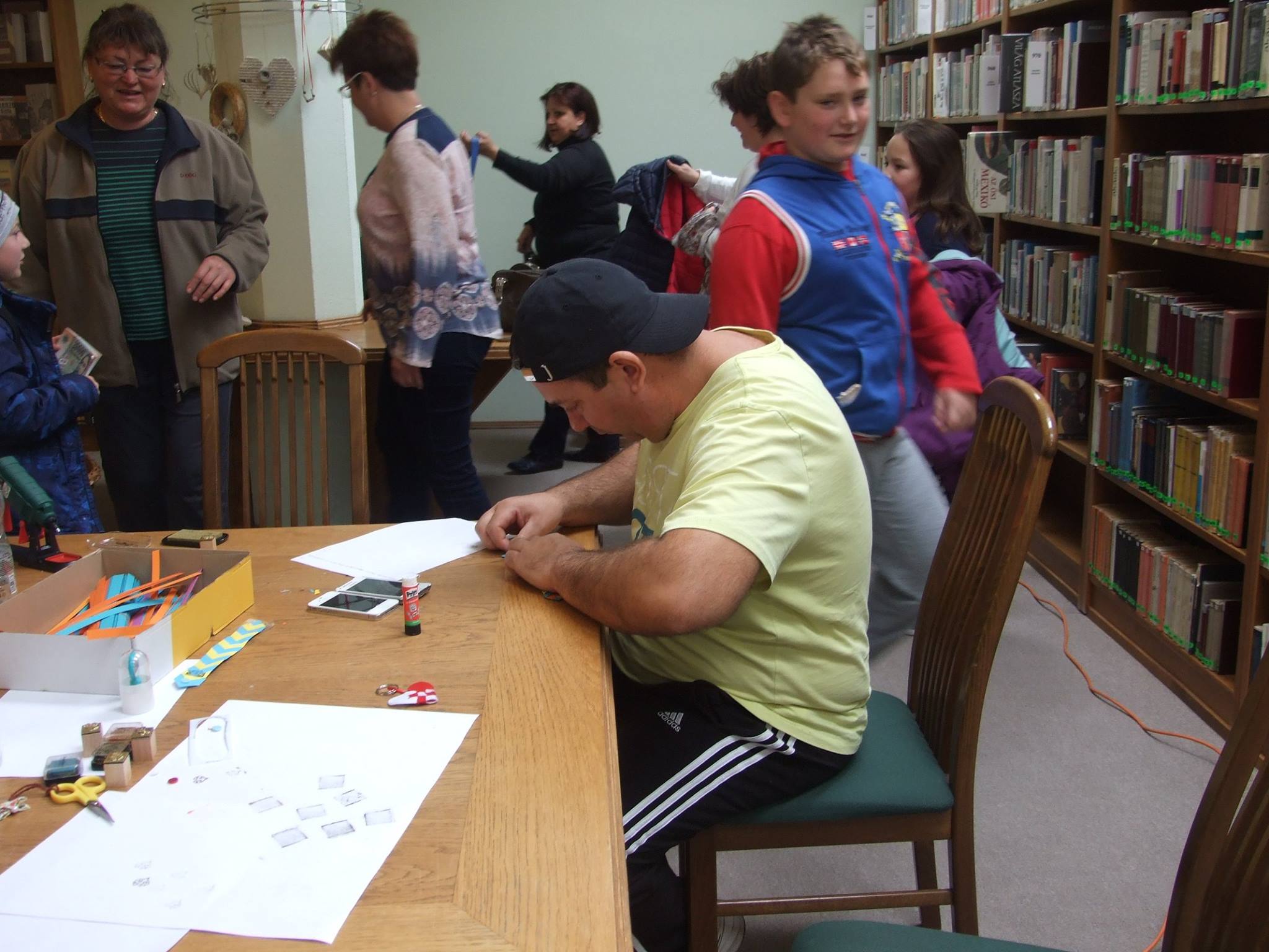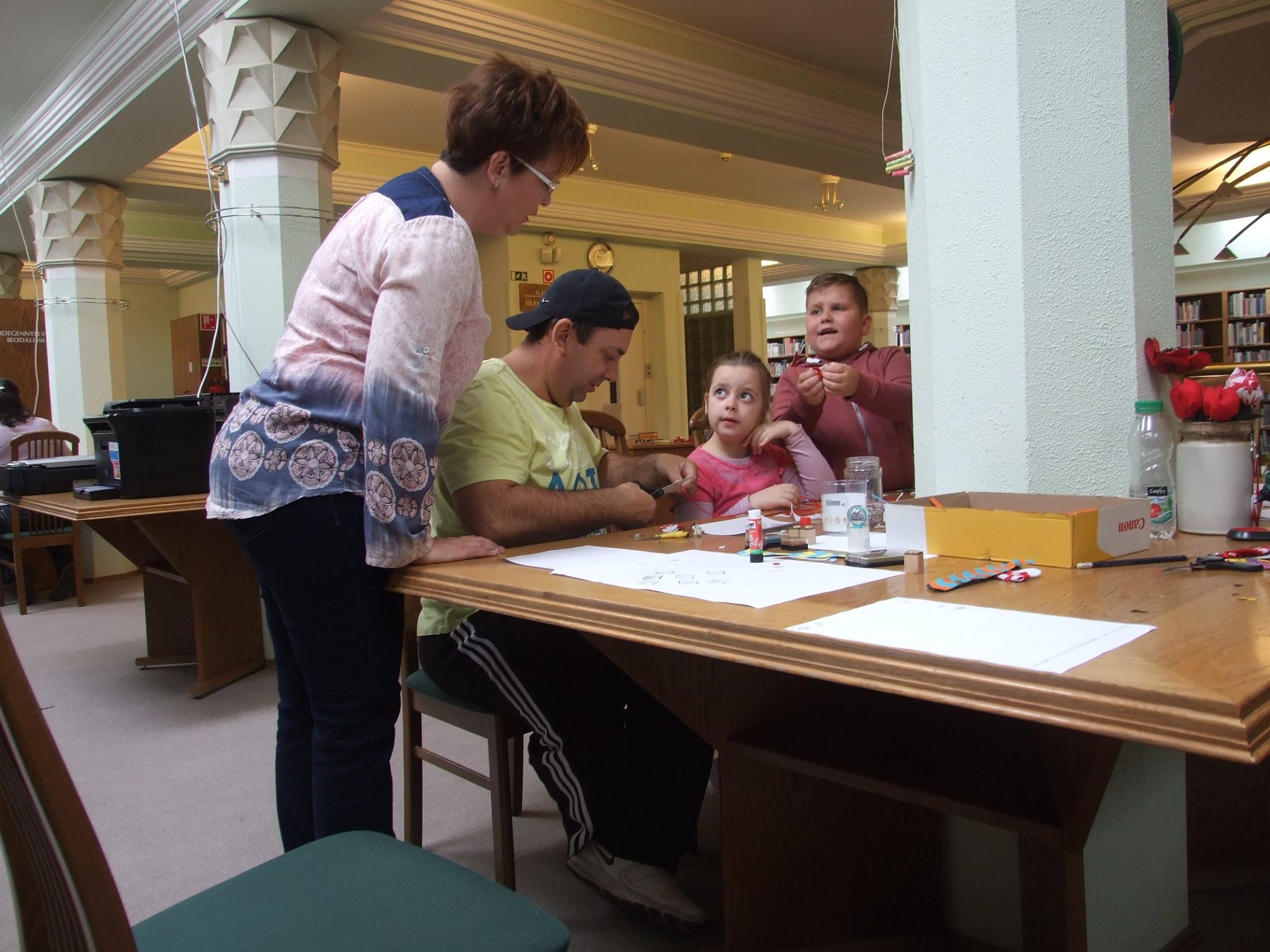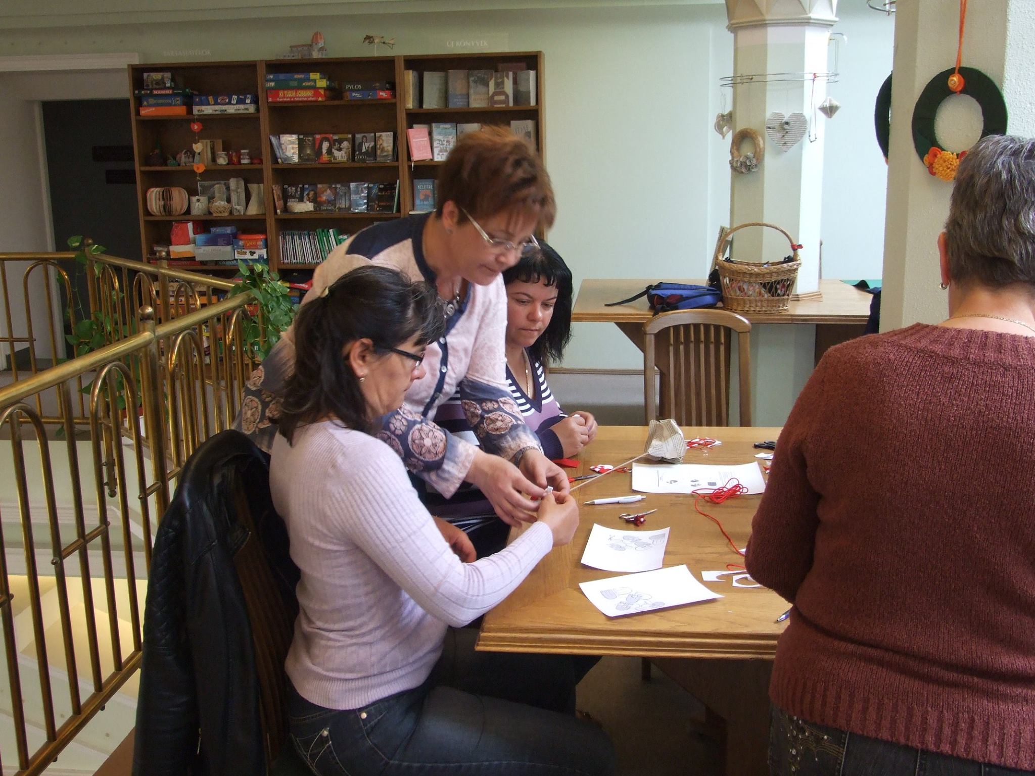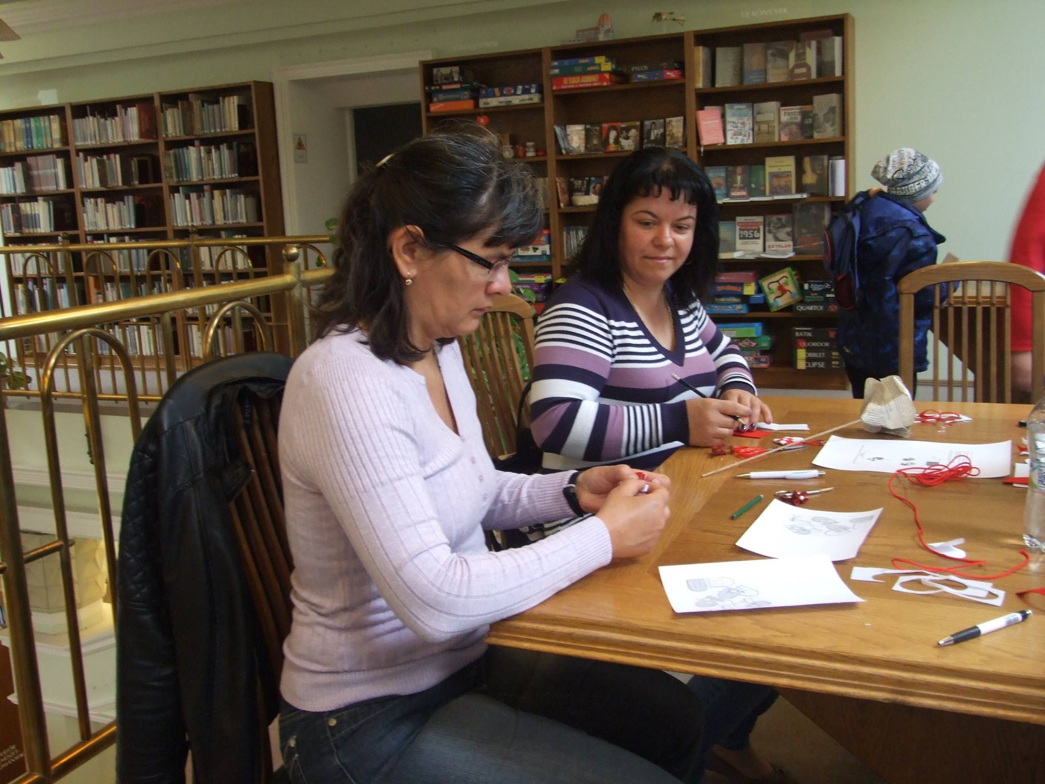 Anyák napi kézműves foglalkozás a könyvtárban Judit Köteles és Erzsébet Dallosné vezetésével.