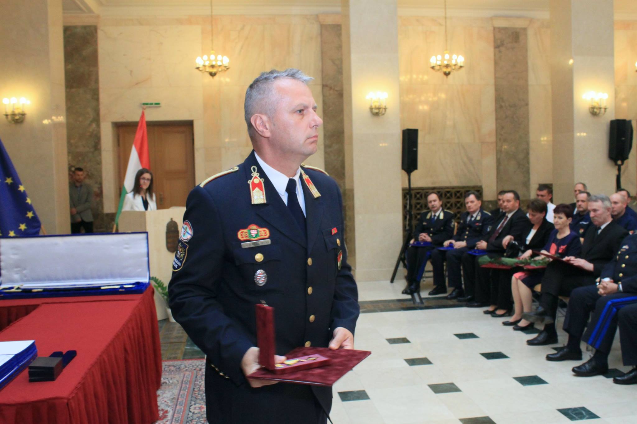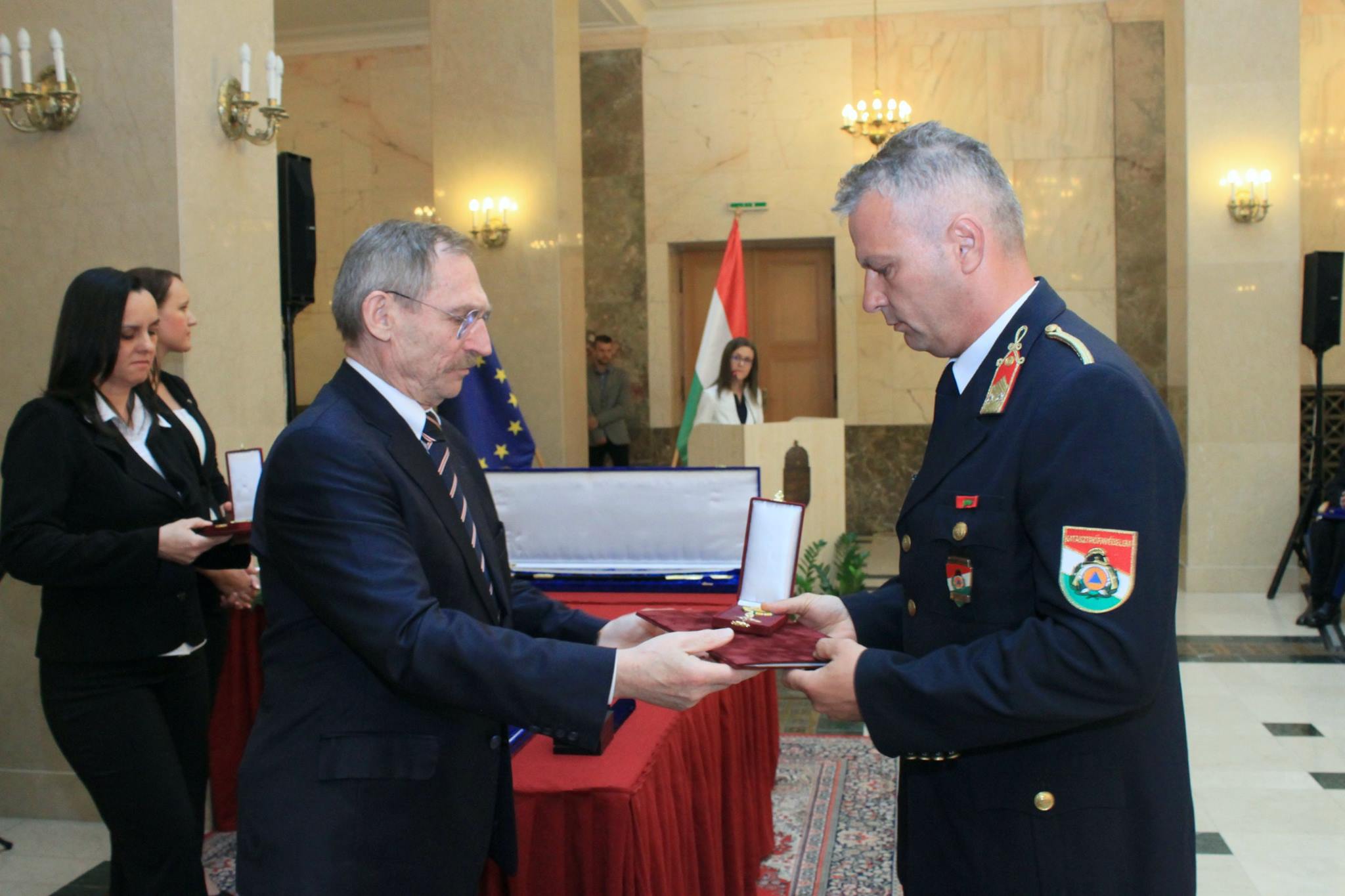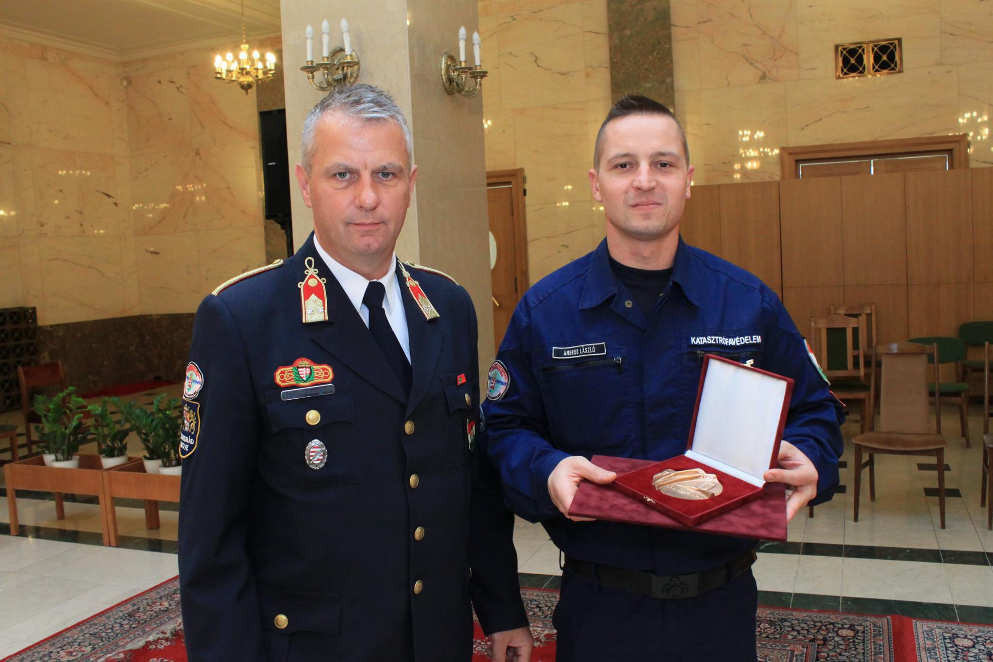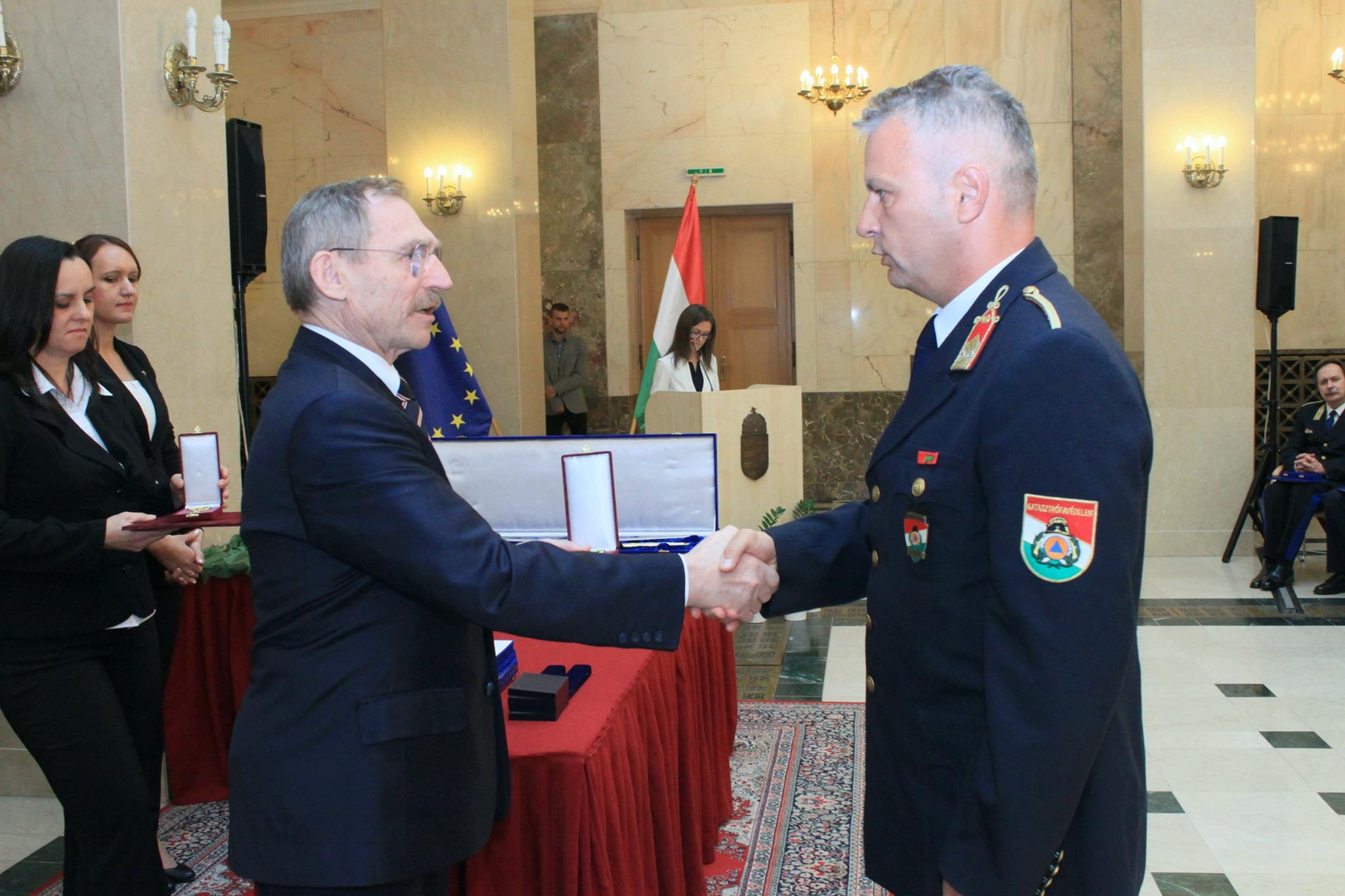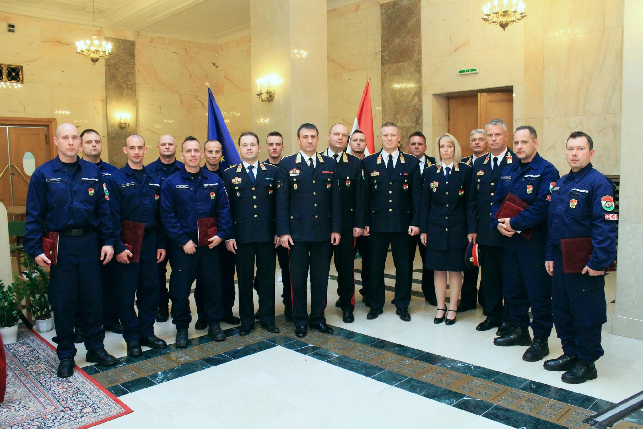 A Rendőrség és a Tűzoltóság Napja alkalmából a Belügyminisztériumban megtartott ünnepségen dr. Pintér Sándor belügyminiszter elismeréseket adott át a katasztrófavédelem több munkatársának, valamint olyanoknak, akik valamilyen tettükkel, életek és értékek mentésével tűntek ki az utóbbi időszakban.