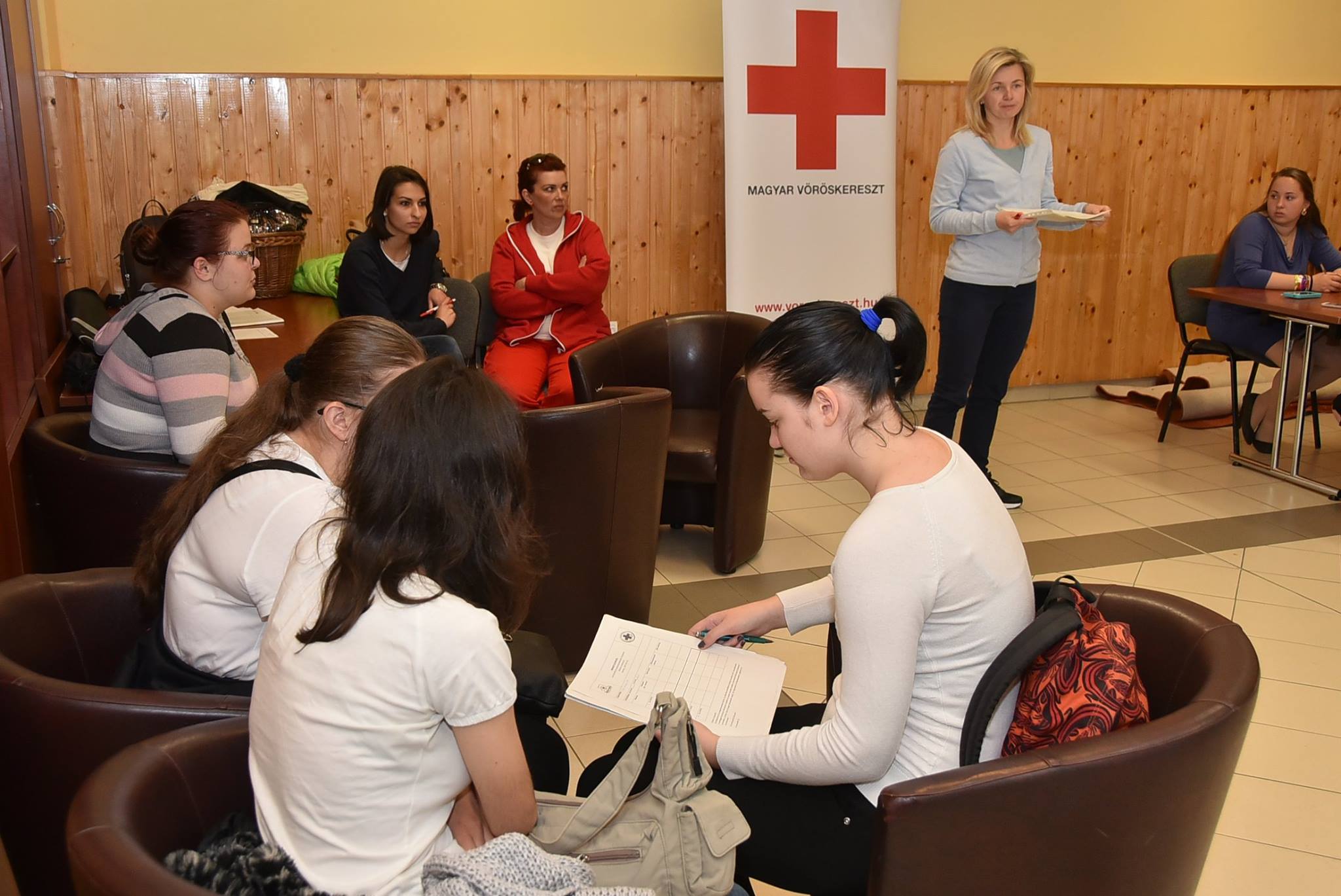 És hogy milyen feladatok voltak? Pl. a Vöröskereszt történetéből kellett tesztet kitölteni, ha folyik az orra a babának és kipirosodott az nózi környéke, akkor mi a teendő vagy pl. mi a probléma, ha folyamatosan vakarja a fejét a baba, azaz ha fejtetűt szedett össze a közösségben? Természetesen a lázcsillapítás alap kérdés egy ilyen versenyen.