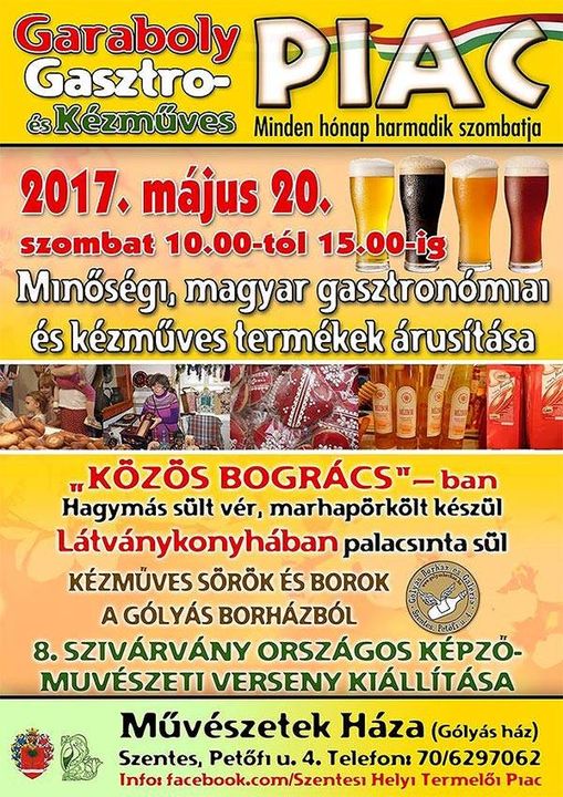 A minden hónap 3. szombatján megrendezésre kerülő szentesi Gasztro Piac nem egyszerűen termelői piac, hanem kulturális platform, az egészséges étkezéshez és fenntartható fejlődéshez ihletforrás, egy életérzés, turisztikai attrakció. Mindenkit szeretettel várunk!