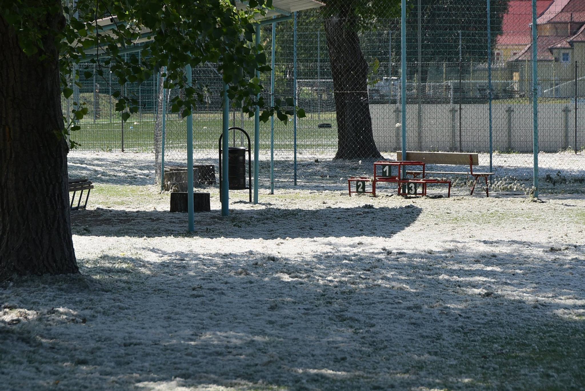 Még mielőtt valaki felbuzdulna a látottakon most szólunk, hogy kár elővenni a síoverált, mert igaz ez a kép fogadja a Kinizsi pályára érkezőket, csakhogy ez csak úgy látszik, mintha hó lenne, de nem az! Vajon mi borítja a tájat? Allergiásak kerüljék el a területet!