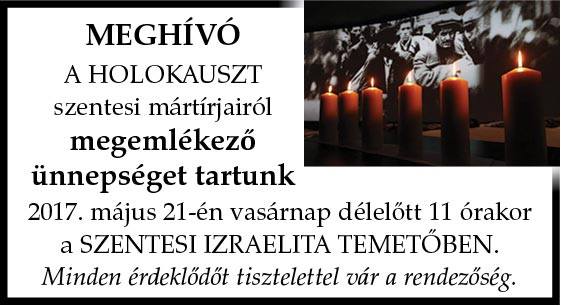 Minden érdeklődőt és emlékezőt várnak 2017. május 21-én vasárnap a Szentesi Izrealita Temetőbe.