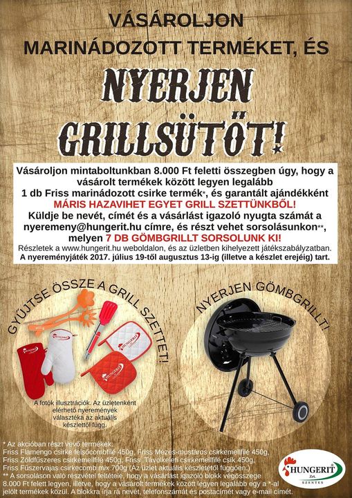Ha a napi bevásárlást jól hangolja össze, akkor nyerhet grill sütőt a Hungerit mintaboltokban. További részletek a plakáton!