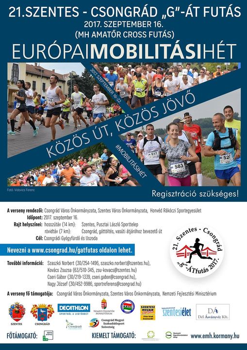 Immáron 21. alkalommal futnak egyik városból a másikba a szentesiek és a csongrádiak az idei gátfutáson. 2017. szeptember 16-án kerül megrendezésre a Mobilitási Hét keretében Csongrád Város Önkormányzata és Szentes Város Önkormányzata támogatásával a .