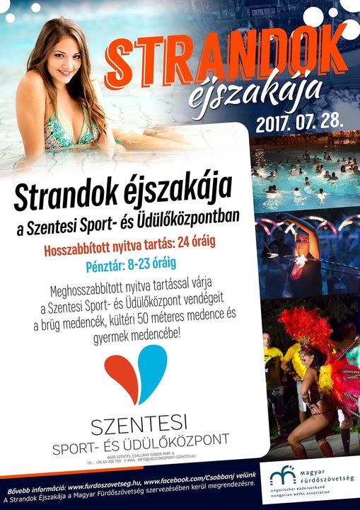 Idén is megannyi magyarországi fürdőben kerül megrendezésre a Strandok Éjszakája. A csatlakozott létesítmények változatos programokkal, kedvezményekkel és természetesen hosszított nyitvatartással várják a kedves érdeklődőket.
