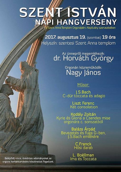 rendez a Szent Anna Templom Orgonájáért Alapítvány 2017. augusztus 19-én szombaton. Nagy János orgonajátéka mellett az ünnepről megemlékezik dr. Horváth György.