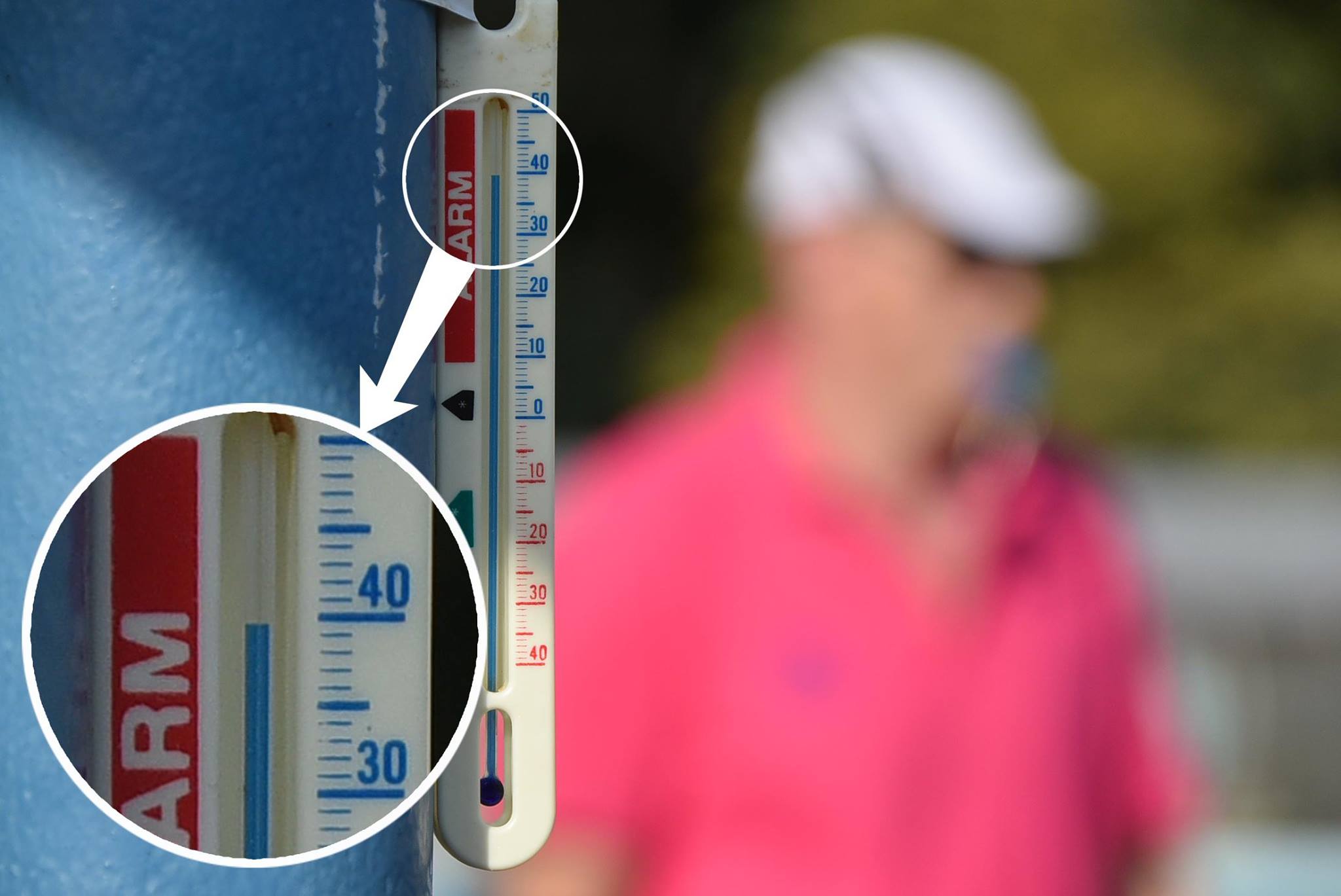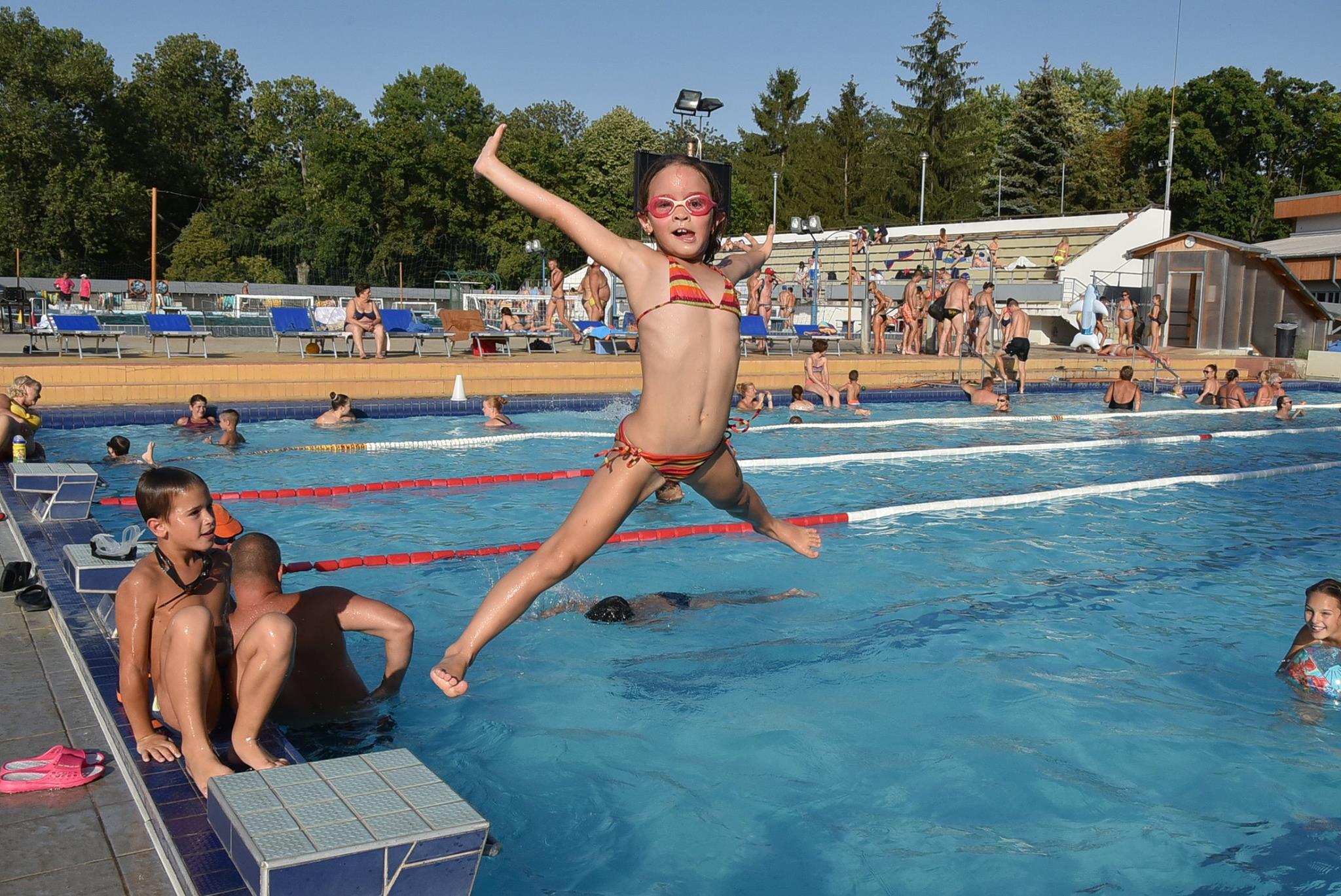 Ezt a kánikulát csak vízparton lehet kibírni – mondták sokan a szentesi strandon. Igaz a hétvégén rendezik meg a Diapolo Kupát is a Dr. Rébeli-Szabó József Városi Uszodában, de e mellett is van bőven vízfelület a felfrissülésre. A fenti kép 18.00 órakor készült a 33-as medence mellett található hőmérőnél.