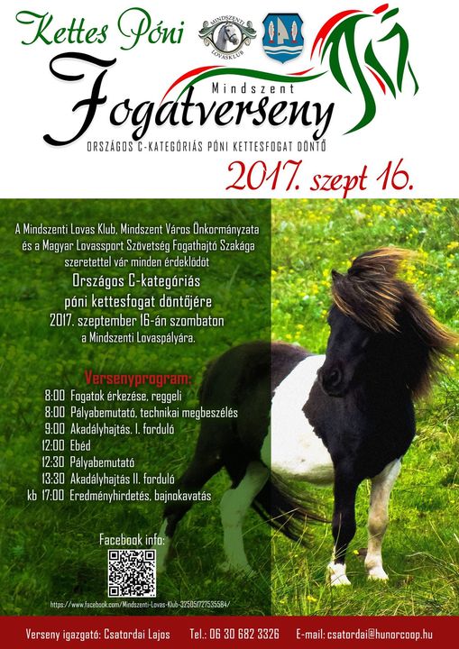 Póni Kettesfogathajtó Országos Bajnokság Döntője kerül megrendezésre 2017. szeptember 16-án Mindszenten, melyre minden érdeklődőt szeretettel várunk.