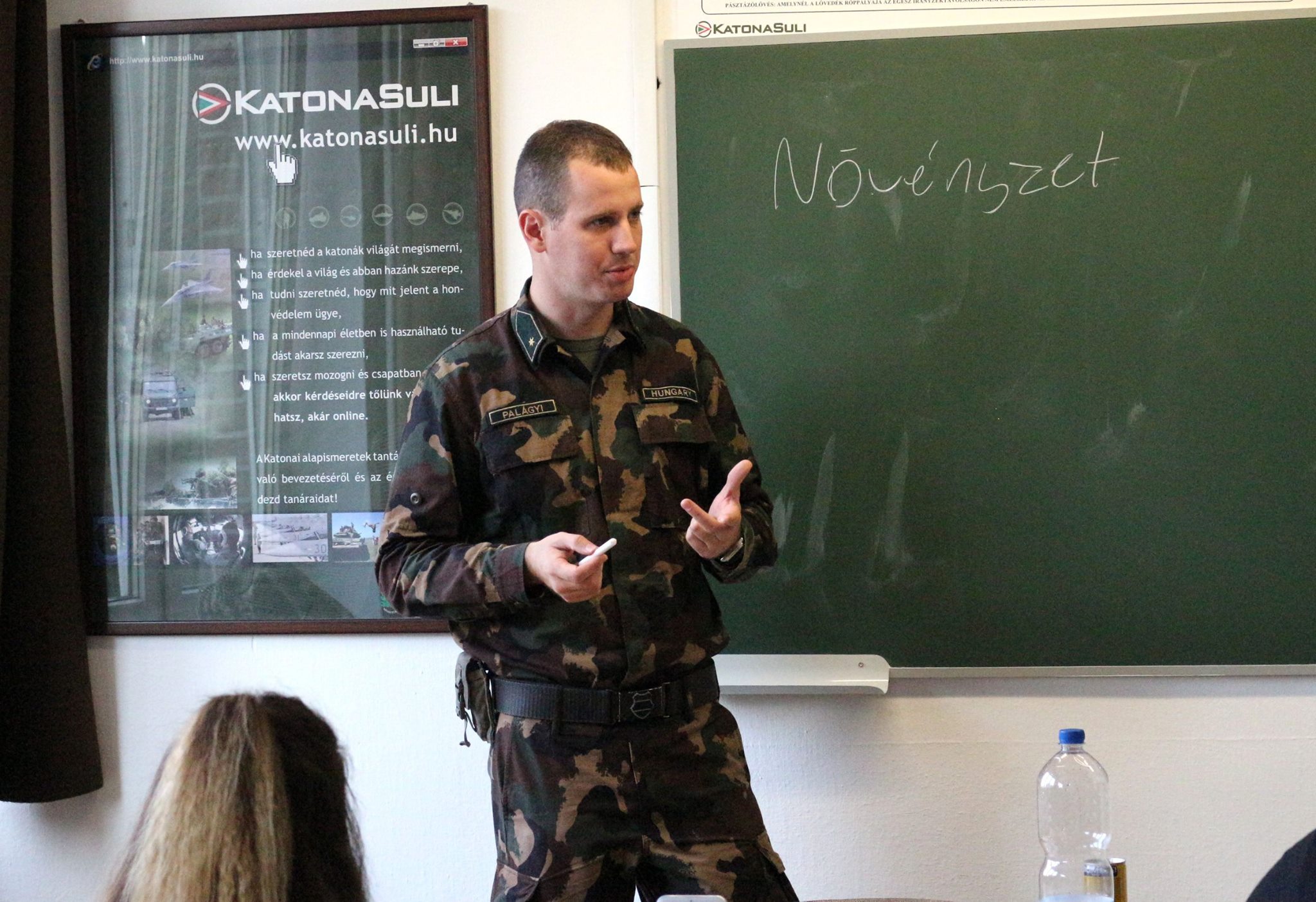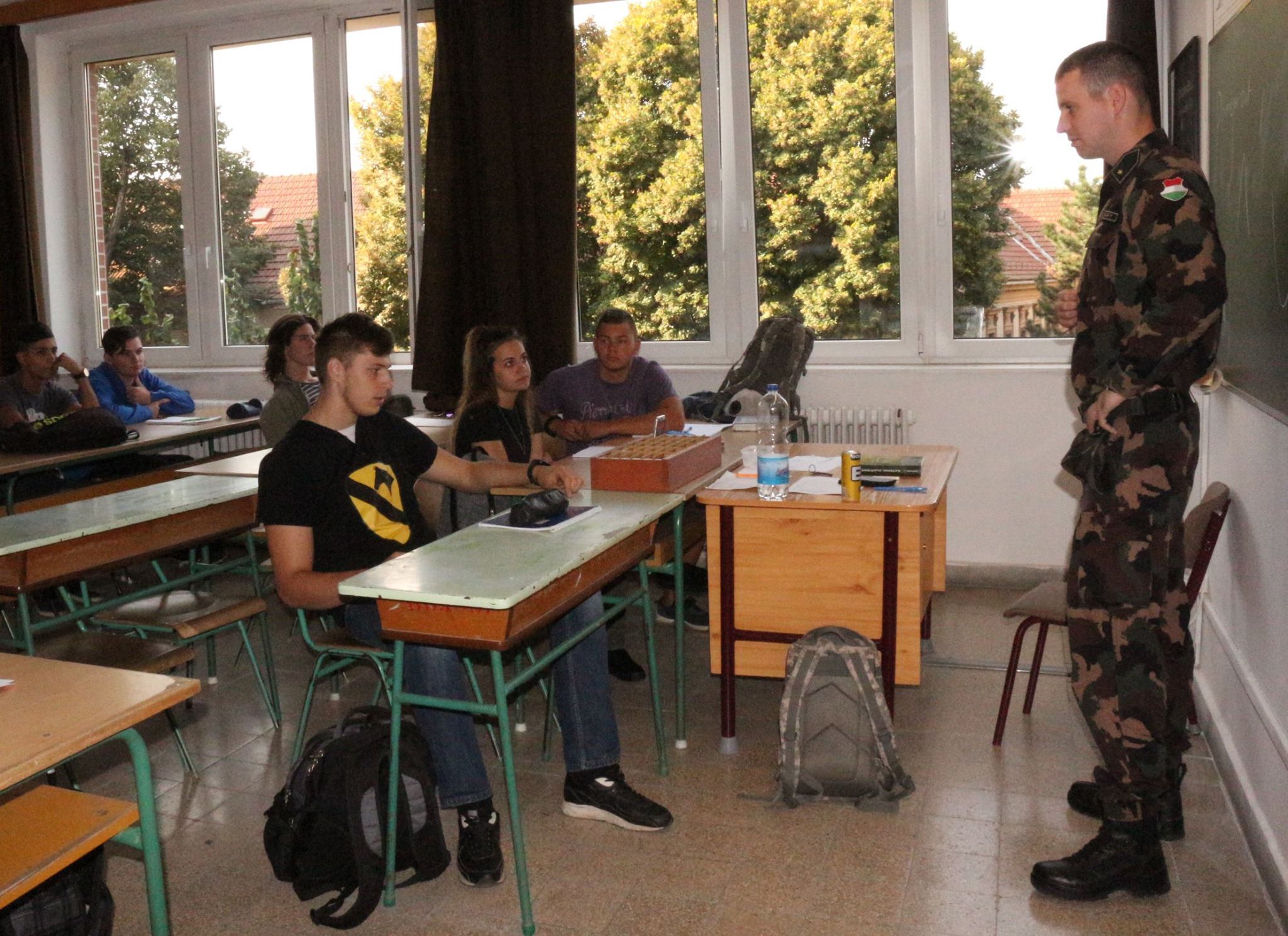A katonás órák alkalmával- melyeket idén Palágyi Gáspár hadnagy úr kezdett meg a tanultak felelevenítésével, valamint harcászati és tereptan elméleti órával- a diákok megismerik a Magyar Honvédség Működési rendszerét és haditechnikai eszközeit, látogatást tesznek a kijelölt katonai objektumba, illetve lehetőségük nyílik hadtörténeti múzeumpedagógiai órákon is részt venni.