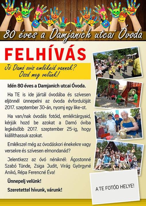 Ha TE is ide jártál óvodába és szívesen eljönnél ünnepelni az óvoda évfordulóját 2017. szeptember 30-án, nyomj egy like-ot.