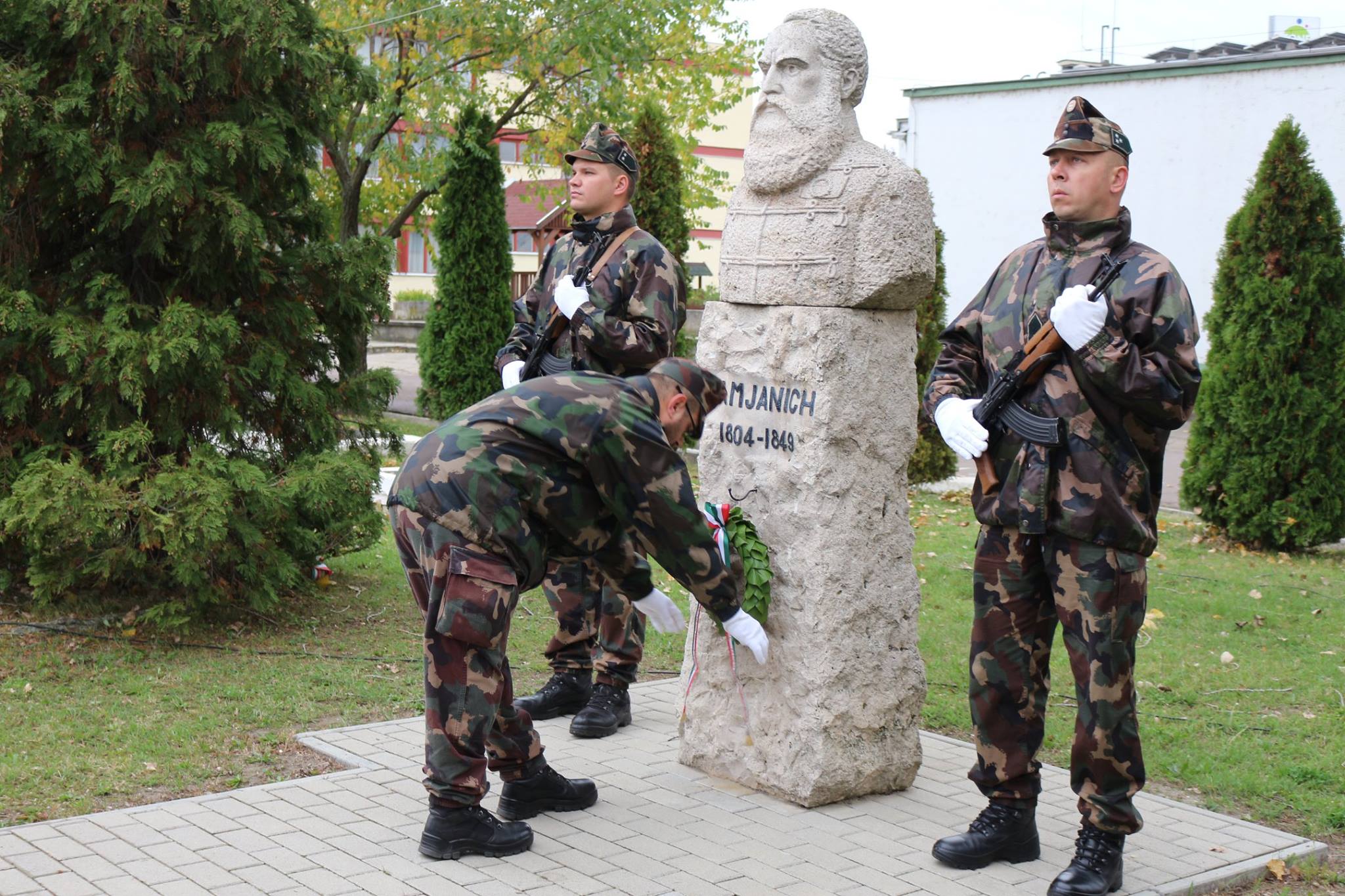A tizenhárom aradi vértanú emlékére az ezred vezető állománya és a Honvédségi Dolgozók Szakszervezetének képviselői katonai tiszteletadás mellett elhelyezték a megemlékezés koszorúit laktanyánk névadója, Damjanich János tábornok szobránál, és egy-egy mécses meggyújtásával tisztelegtek a vértanúk emléke előtt.