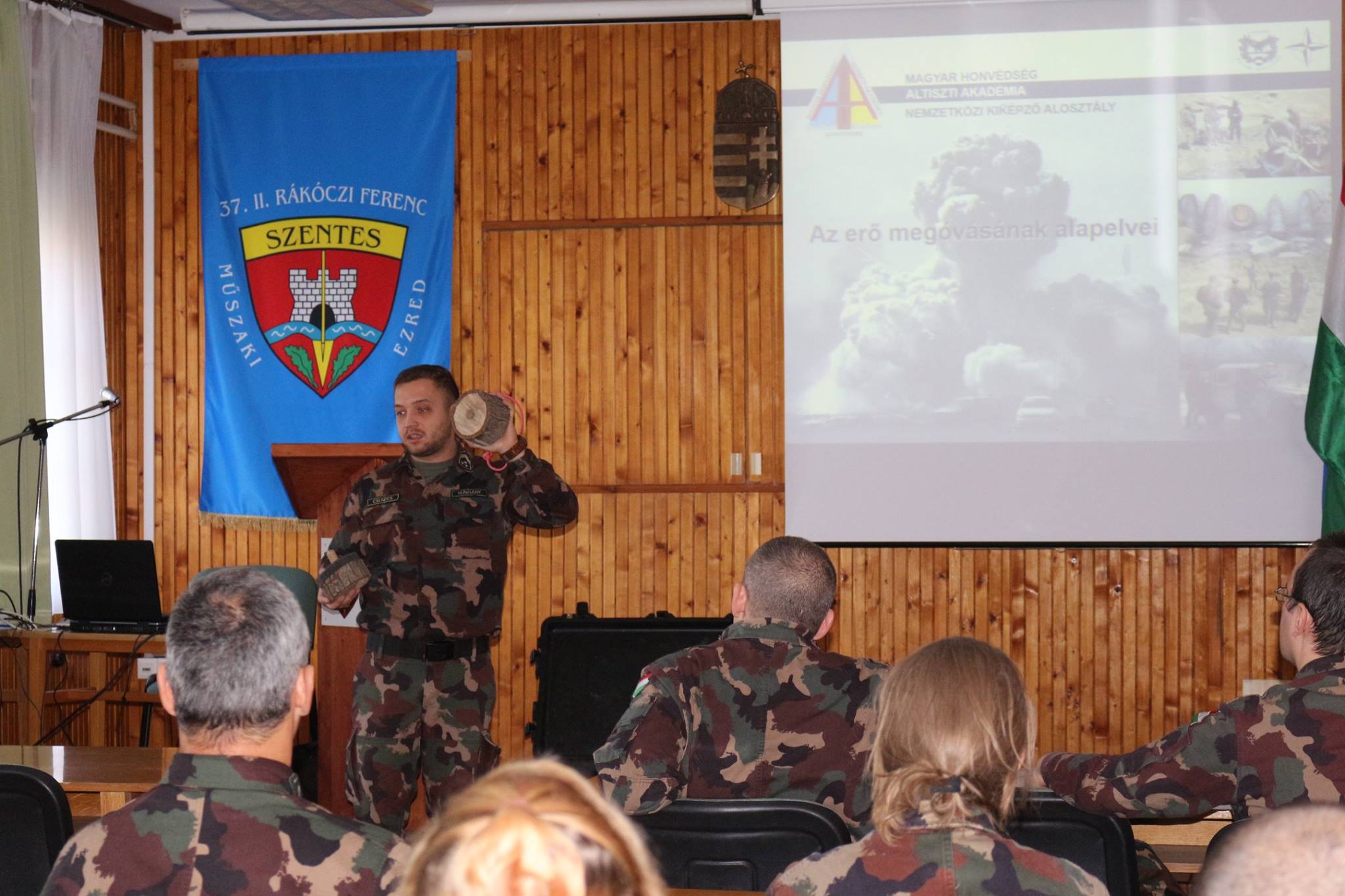 Az MH 37. II. Rákóczi Ferenc Műszaki Ezred katonáinak az alakulat alaprendeltetéséből adódó feladataikon túl, elengedhetetlenül fontos, hogy műveleti területen is megállják a helyüket. Ennek érdekében az MH Altiszti Akadémia Nemzetközi Kiképző Alosztály kiképzői egynapos felkészítést tartottak részükre C-IED ismeretekből, azaz a rögtönzött robbanóeszközök felderítési keresési és telepítési módszereiből.
