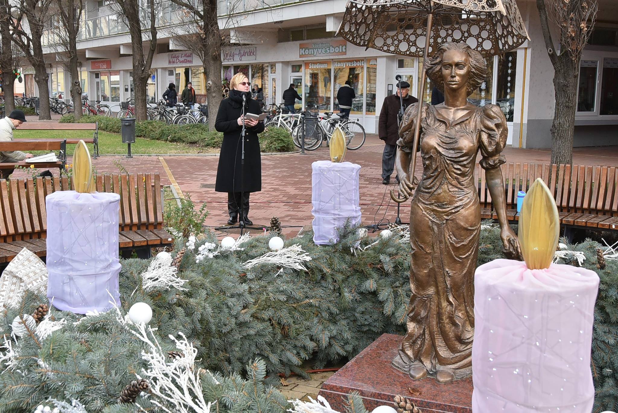 2017. december 24-én délelőtt 11 órakor picit szeles időben gyülekeztek a szentesiek a városi adventi koszorúnál, hogy közösen gyújtsák meg az.