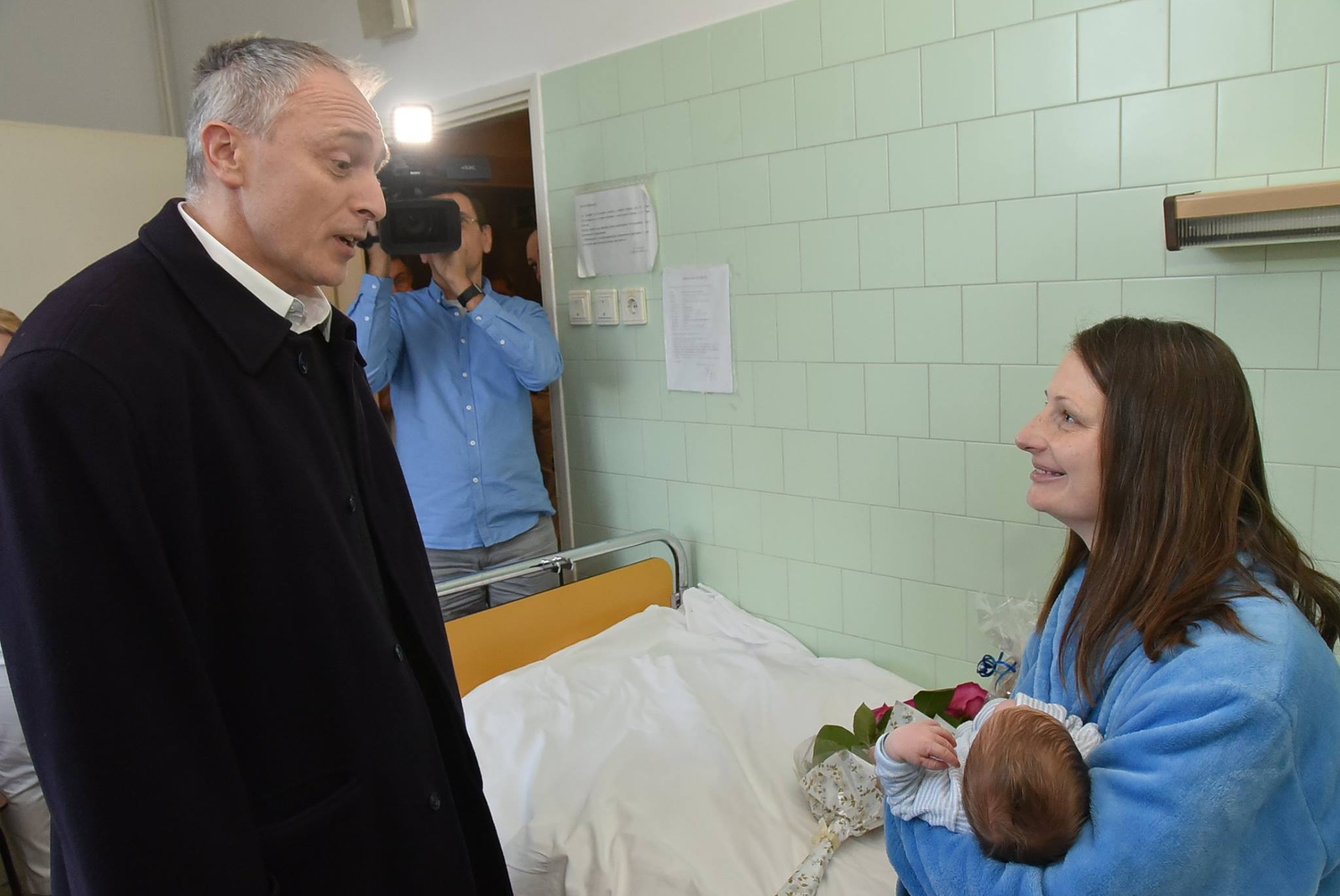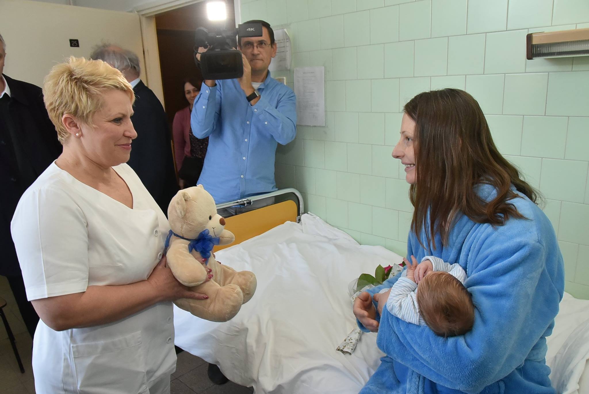 A Dr. Bugyi István Kórház nevében Dr. Szilágyiné Kádár Irén ápolási igazgató köszöntötte anyukát és gyermekét.