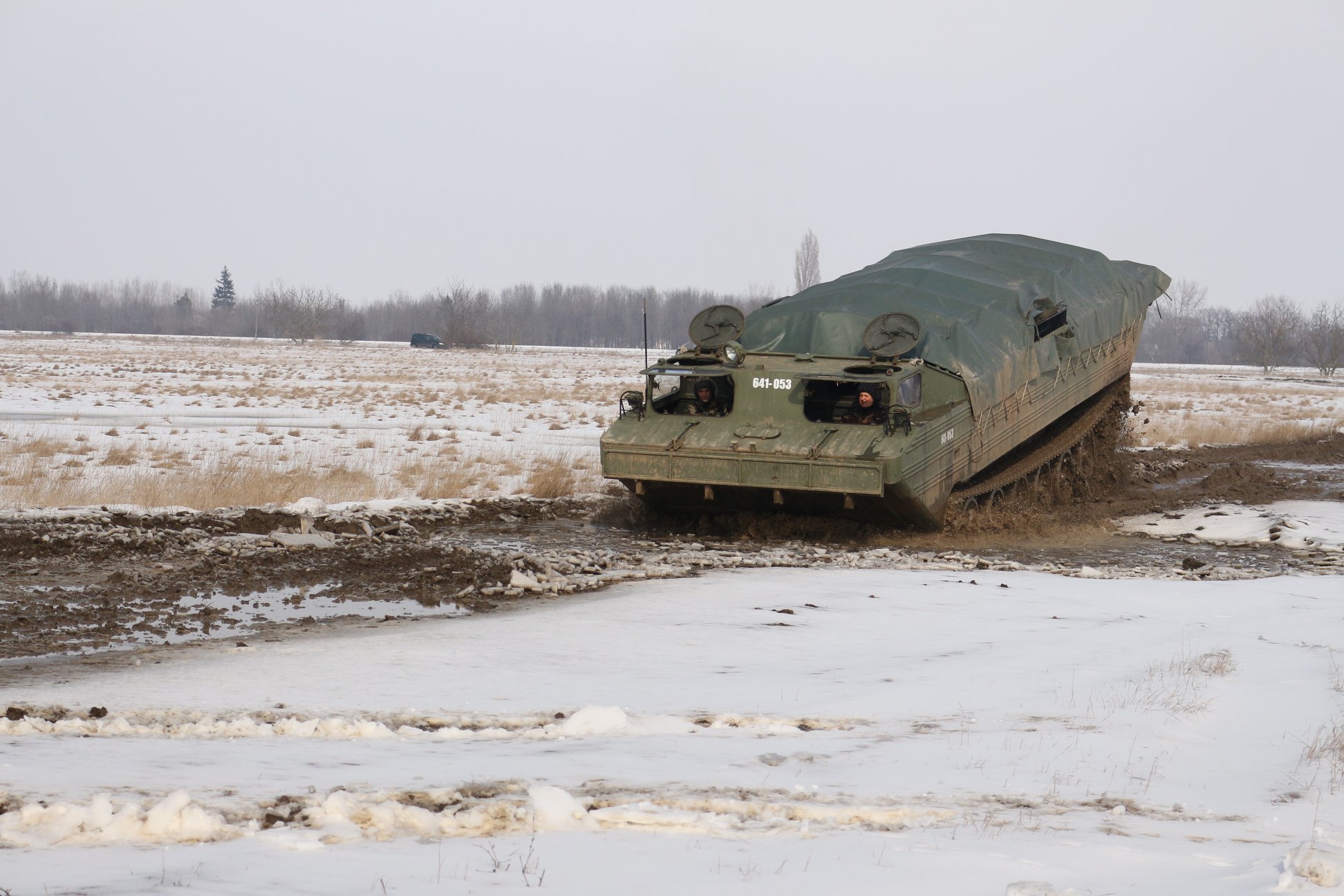 Szentesen, az MH 37. II. Rákóczi Ferenc Műszaki Ezrednél a napokban megkezdődött a PTSZ-M típusú közepes, lánctalpas úszó gépkocsi nehézgépkezelői tanfolyamának gyakorlati része.