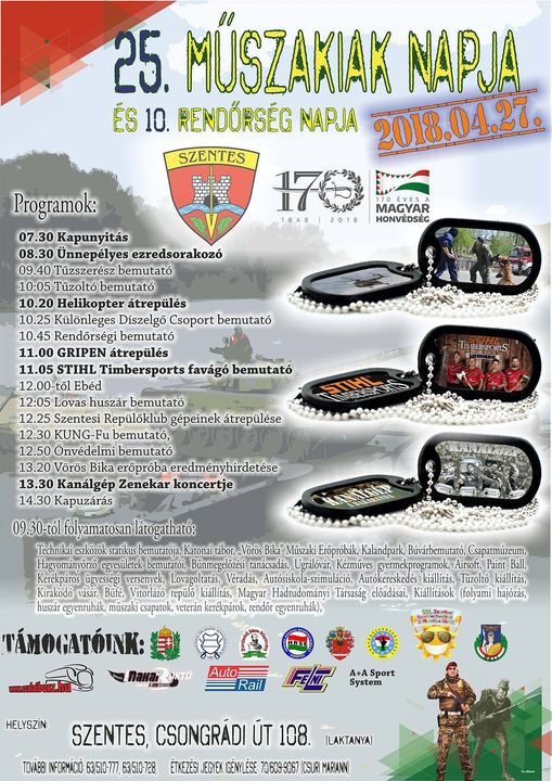 Immáron 25. alkalommal kerül megrendezésre a Műszakiak Napja Szentesen a MH 37. II. Rákóczi Ferenc Műszaki Ezred laktanyájában, mely immáron tizedik éve kapcsolódik a Rendőrség Napjával.