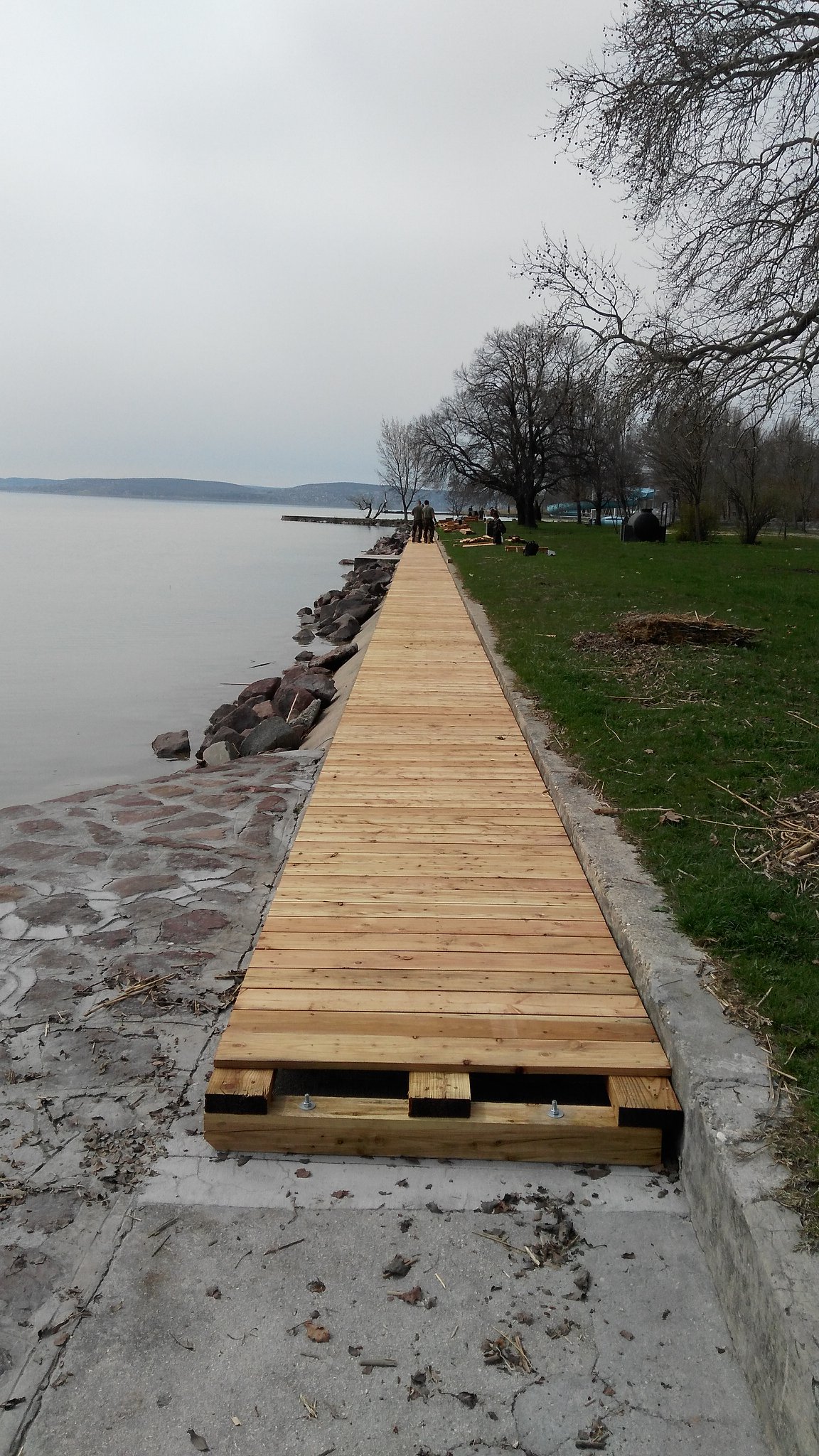A katonák a strand parti részét vörösfenyő deszkával borítják, melyet környezetbarát anyaggal impregnálnak annak érdekében, hogy ellenálljon az időjárás és a víz károsító hatásának.