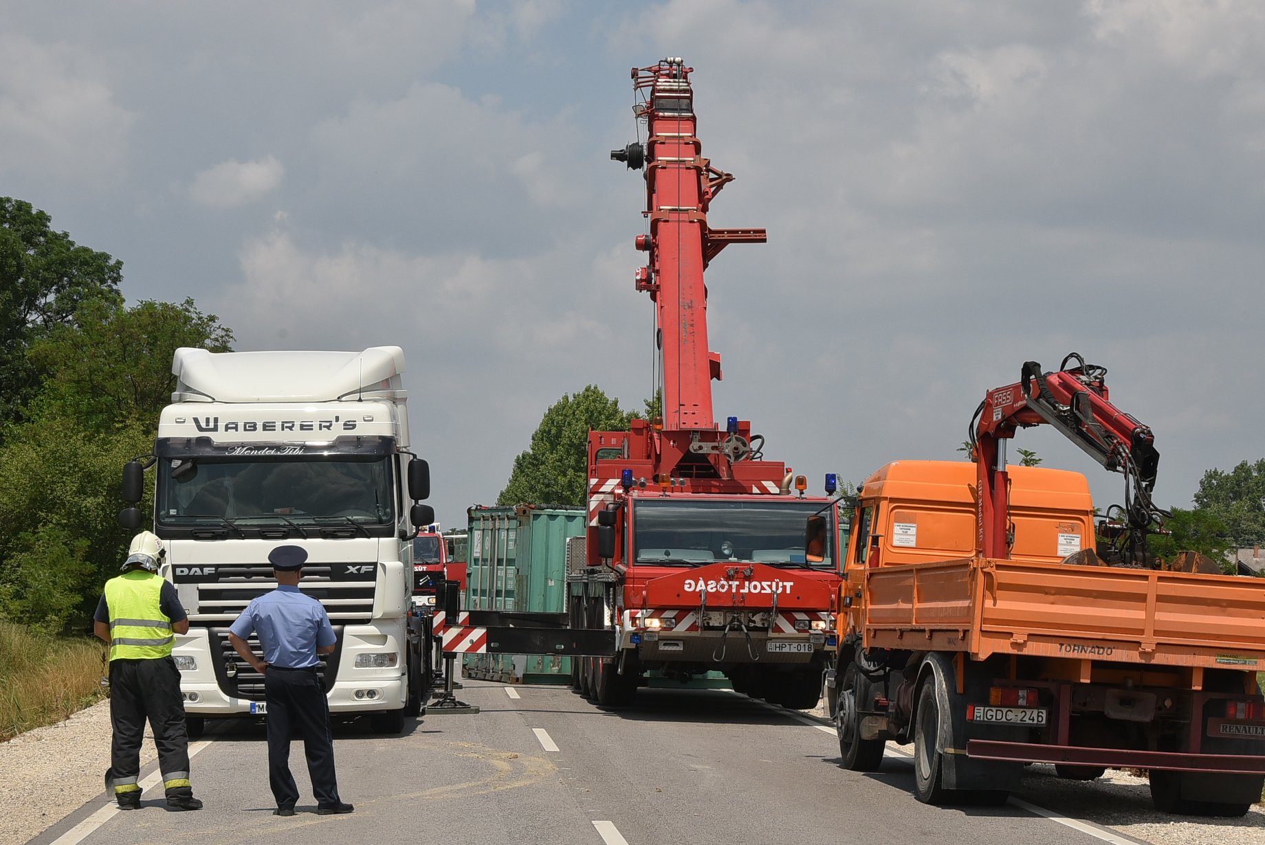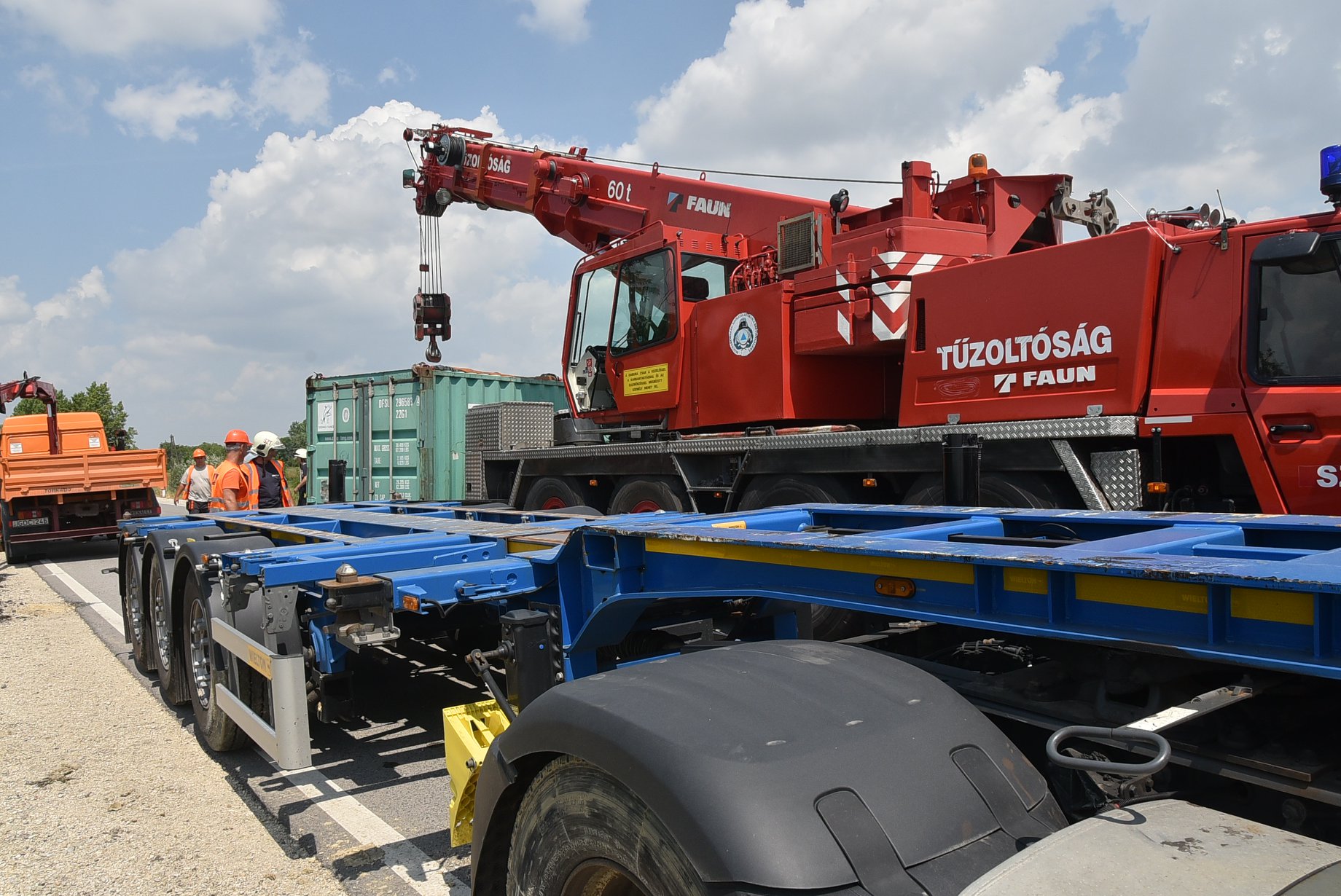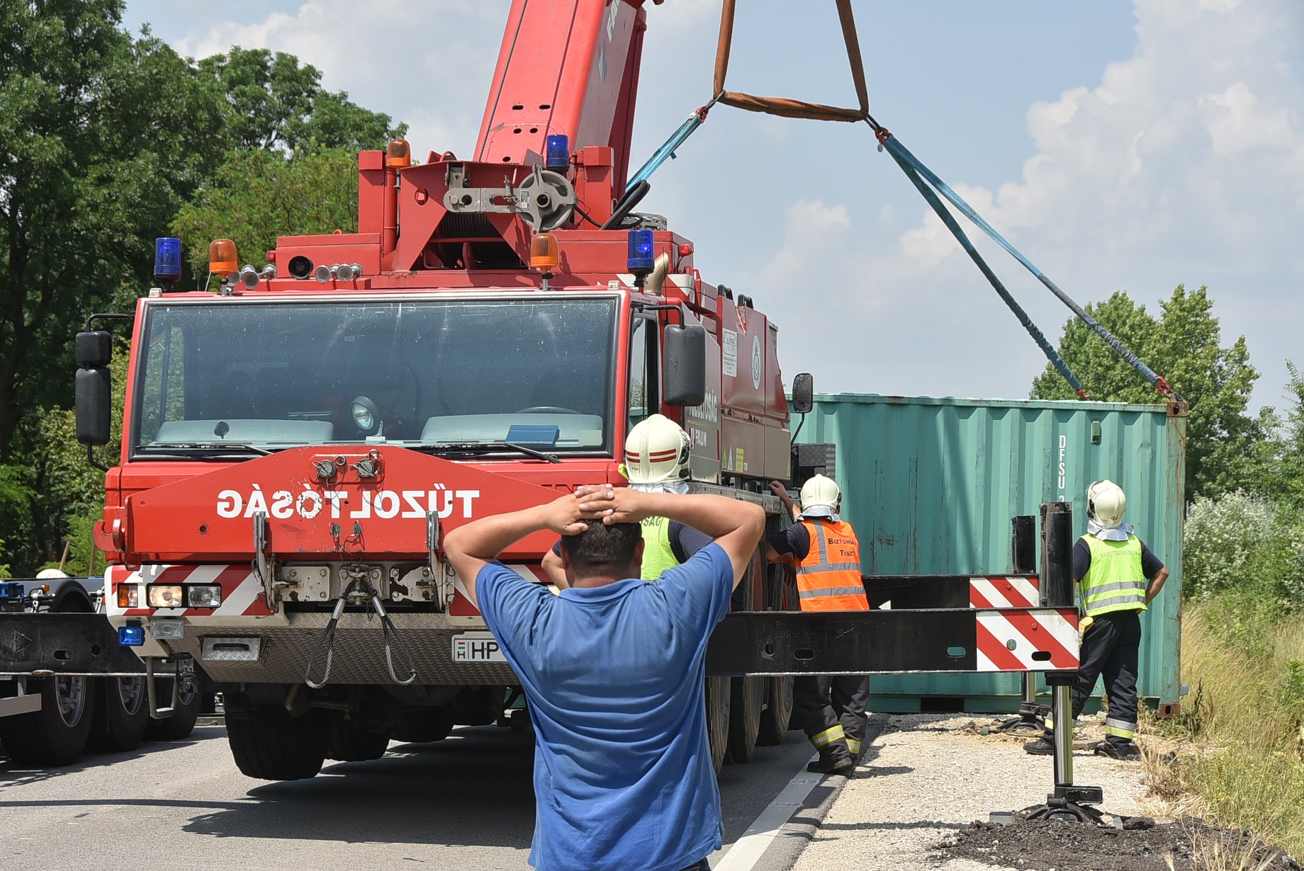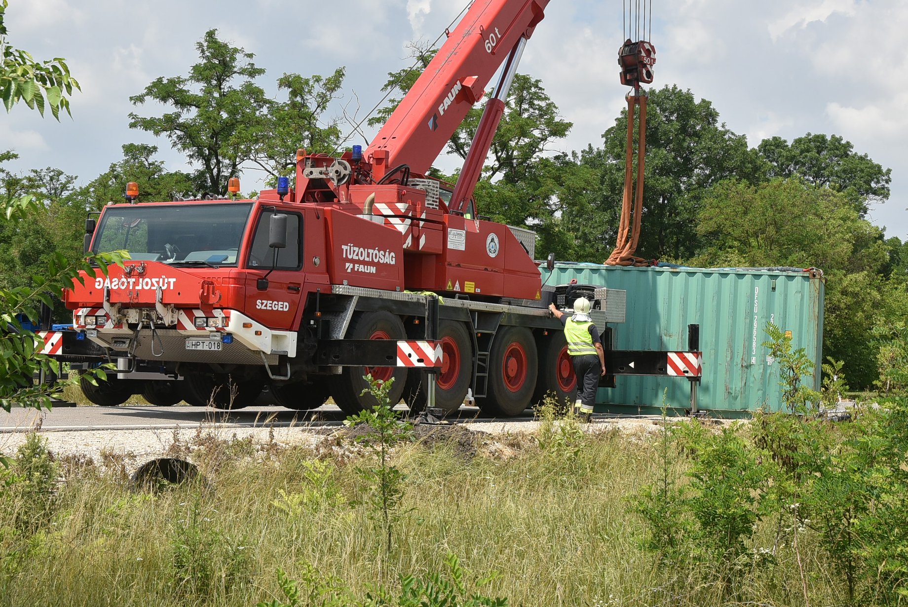 Még mielőtt rakományával együtt beleborult volna kérte a katasztrófavédelem segítségét, hogy visszatérjen a útra. A szegedről érkező 60 tonnás daru leemelte a súlyos konténert, mert miután a kamion felállt vissza az útburkoltra visszahelyezte azt.