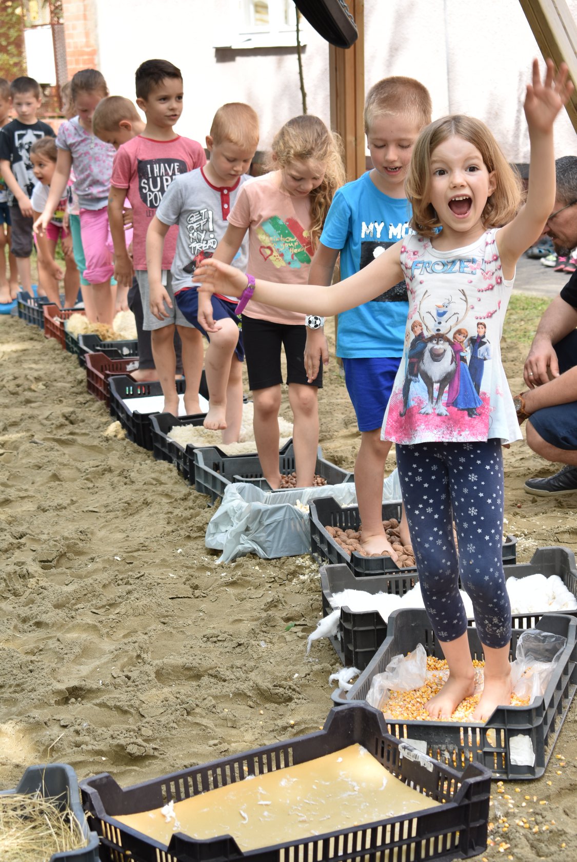 4. Mezítlábas ösvény az óvoda előtti homokos játszótéren 38 féle anyag megtapasztalásának lehetőségével – a szülők segítségével;