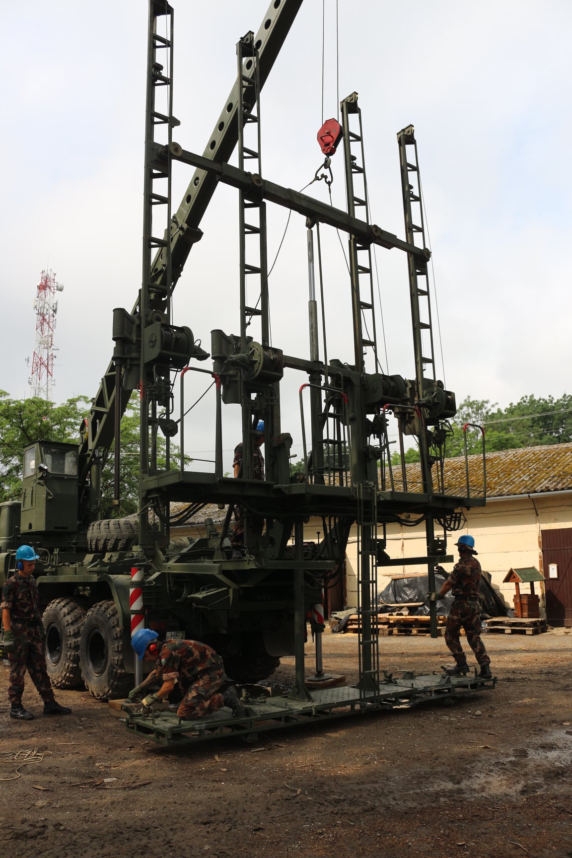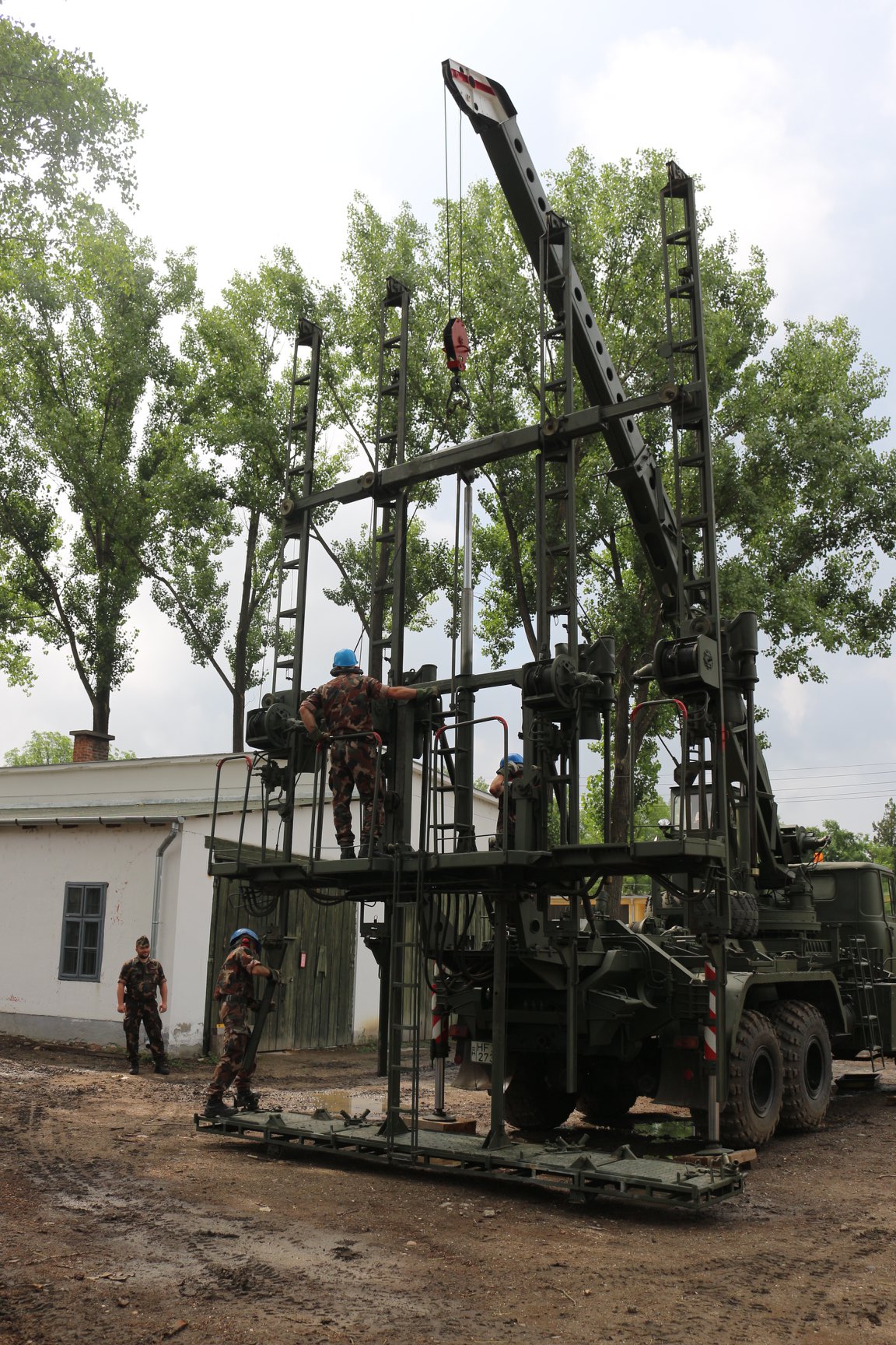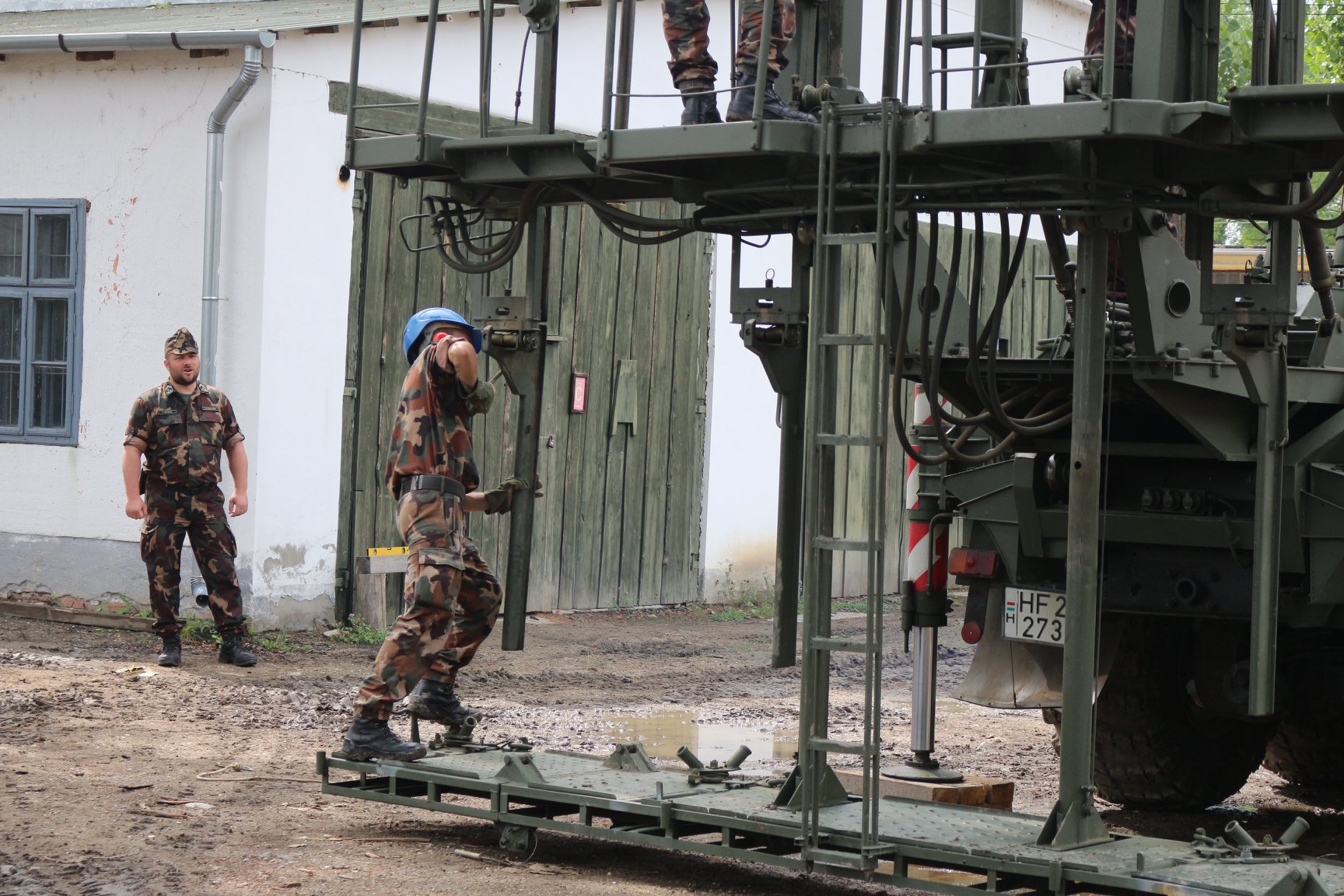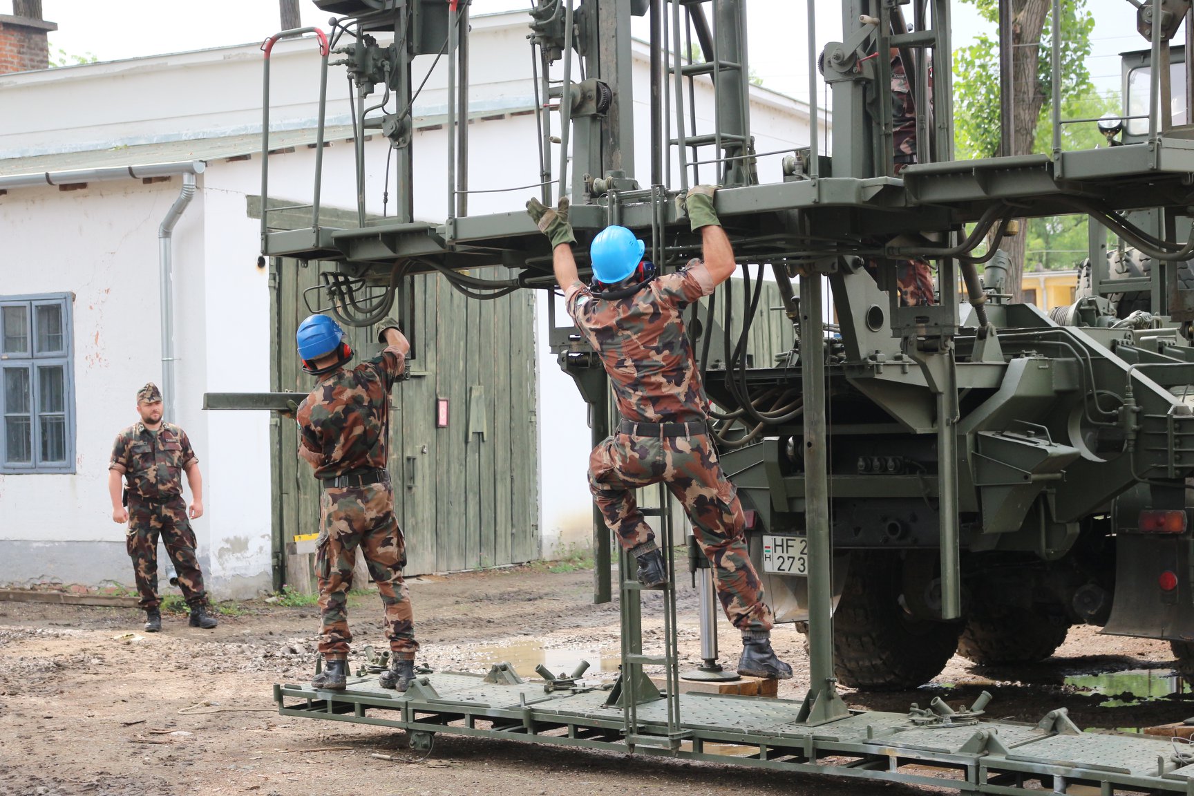 Alacsonyvízi fahidak építésének részfeladatait gyakorolják a telephelyen az MH 37. II. Rákóczi Ferenc Műszaki Ezred Alacsonyvízi hídépítő századának újonc katonái. A kiképzendők a mostani foglalkozáson a cölöpöző készlet előkészítésének fogásait ismerik meg.
