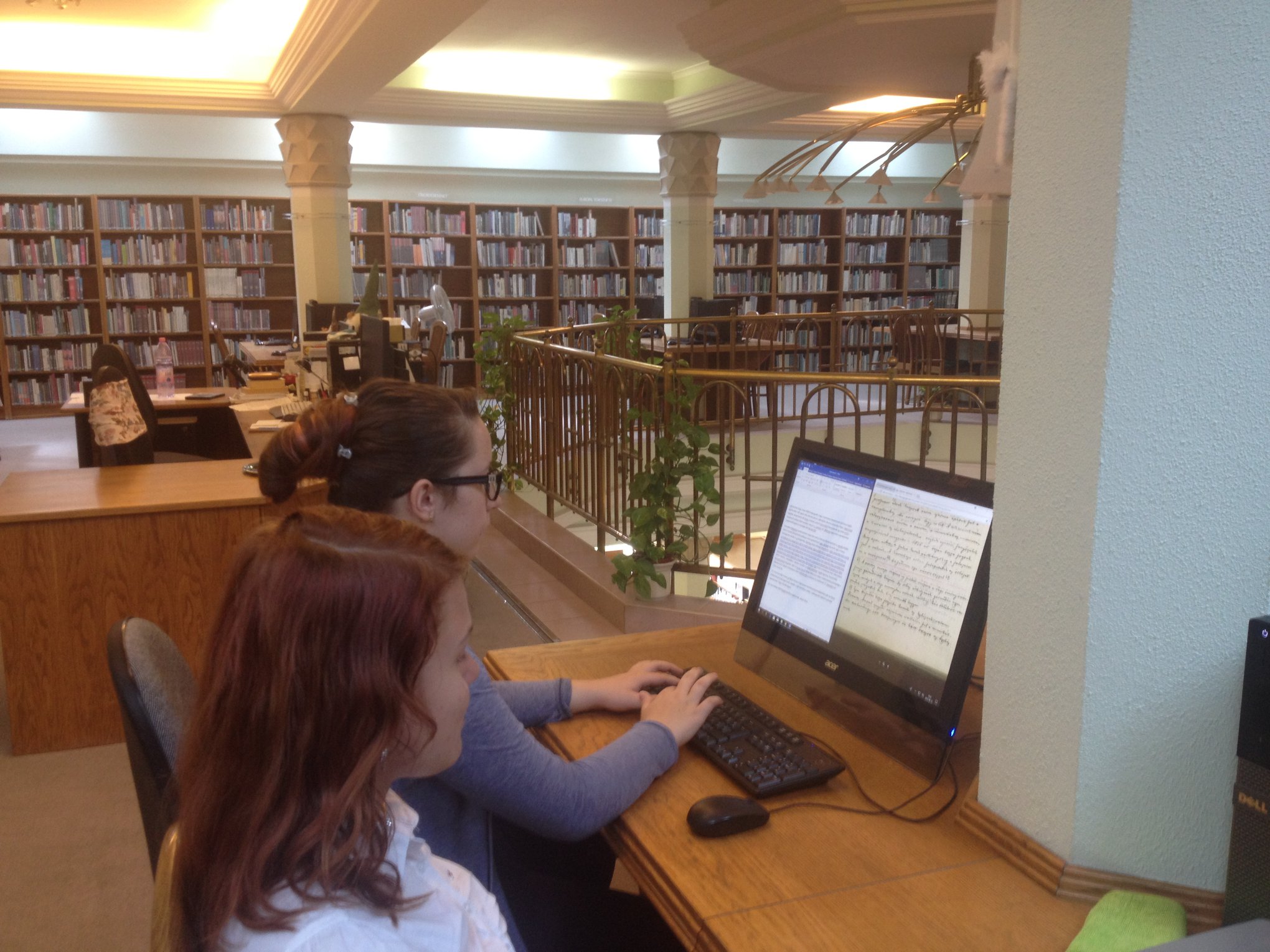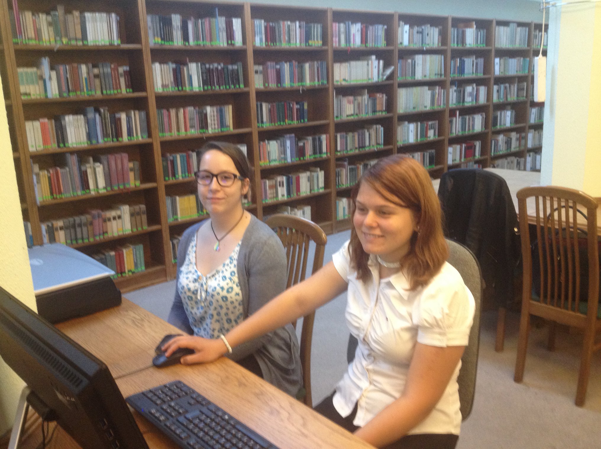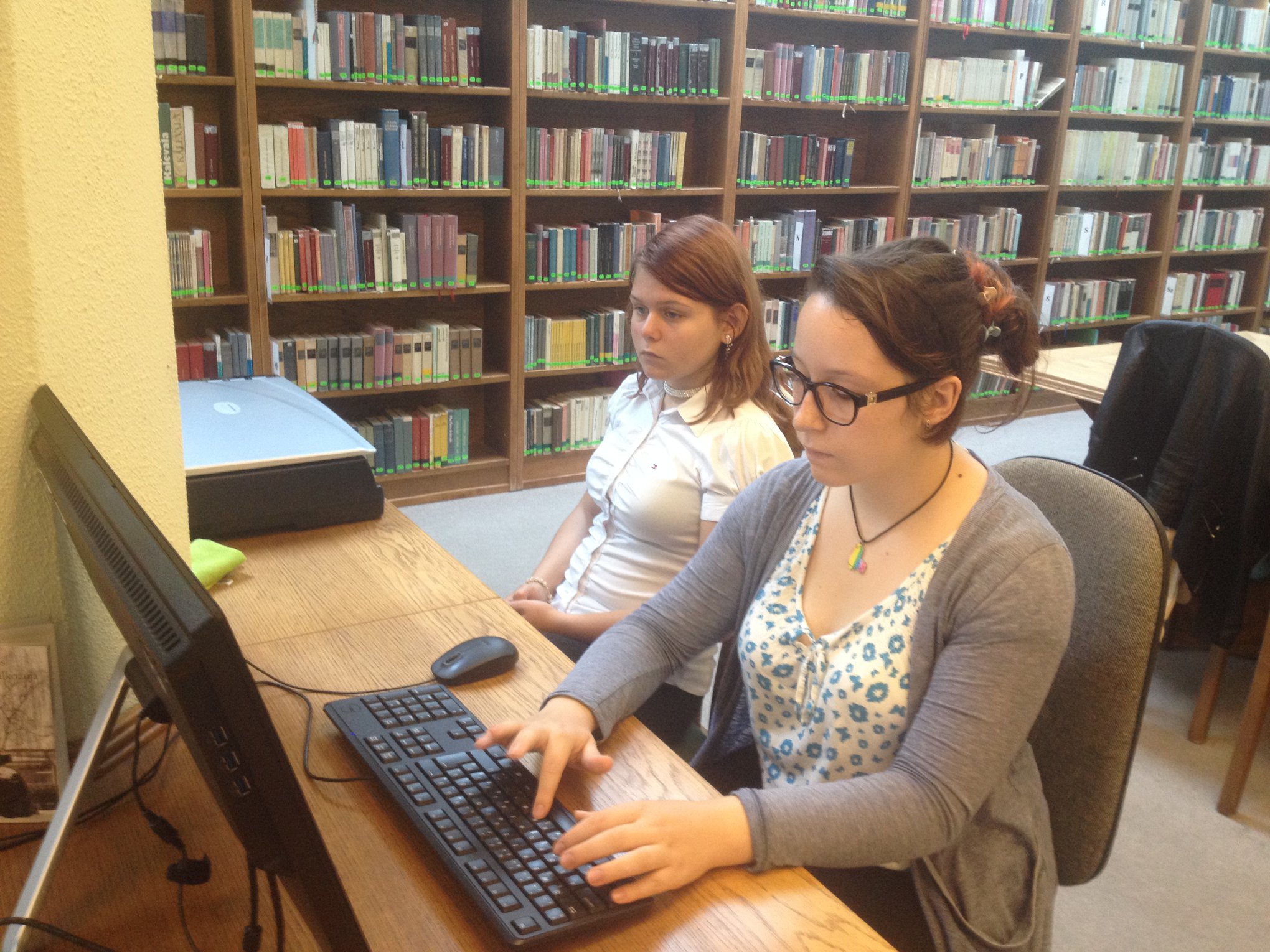 Közösségi szolgálatot teljesítő HMG-s diákok dolgoznak könyvtárunkban. Nóra Erdei és Edit Leila Tomcsányi, Papp Lajos: „A szentesi református Egyház története” c. kéziratának digitalizálásában segítkezik.