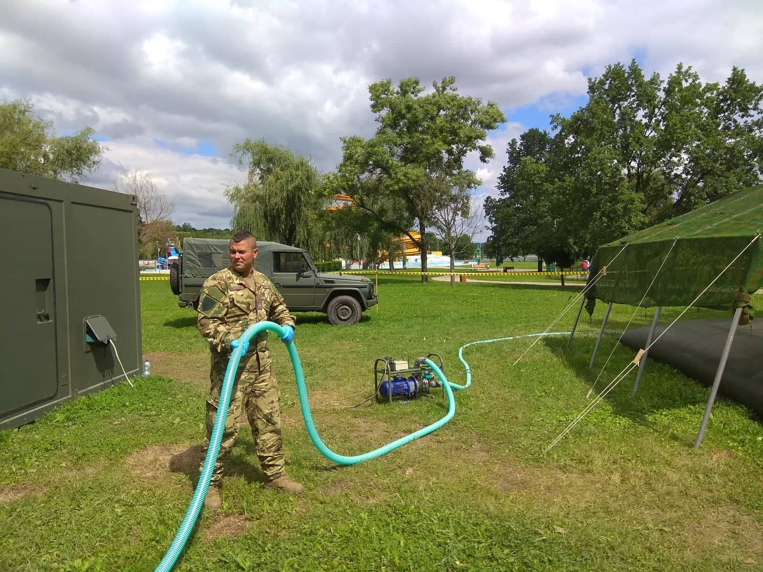 A Víztisztító század katonái kéthete érkeztek Orfűre. Telepítették a víztisztító berendezést a vízmű mellett, hogy szükség esetén bármikor rá tudjanak csatlakozni a helyi vízhálózatra. A telepítés után próbaüzem következett, majd mindent alaposan átfertőtlenítettek, hogy képesek legyenek a vízmintavételhez ivóvíz minőségű vizet produkálni.