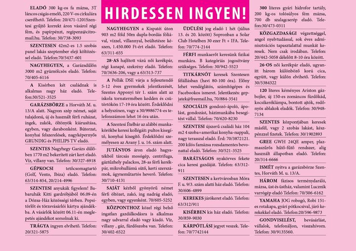 Kezdőlap Szentesi Élet Hirdessen ingyen a Szentesi Életben!…