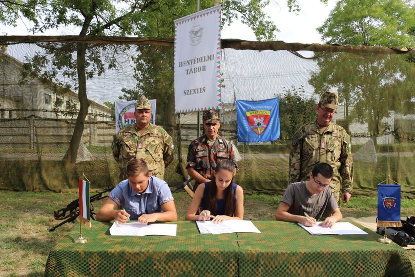Három korábbi táborlakónk döntött úgy, hogy önkéntes területvédelmi tartalékos katonai szolgálatot vállal. A mai napon ünnepélyes keretek között az idei évi utolsó búvártáborunk befejező napján.
