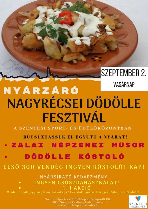 2018. szeptember 2-án nyárzáró Nagyrécsei Dödölle Fesztivált rendeznek a Szentesi Sport- és Üdülőközpontban, melyre minden érdeklődőt szeretettel várnak. További részletek, kedvezmények a plakáton!