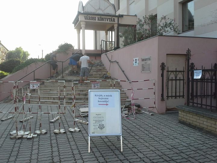 Elkezdődött a lépcsőnk felújítàsa. Ettől függetlenül szeretettel vàrjuk Önöket könyvtàrunk nyitva tartàsi ideje alatt. Bejàrat a hírlapolvasó felöl.
