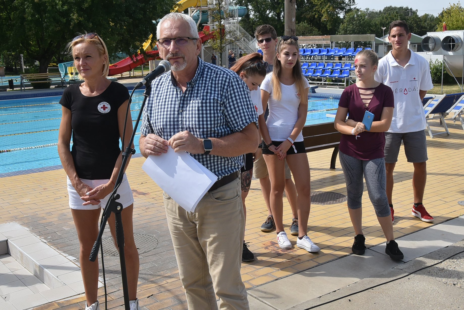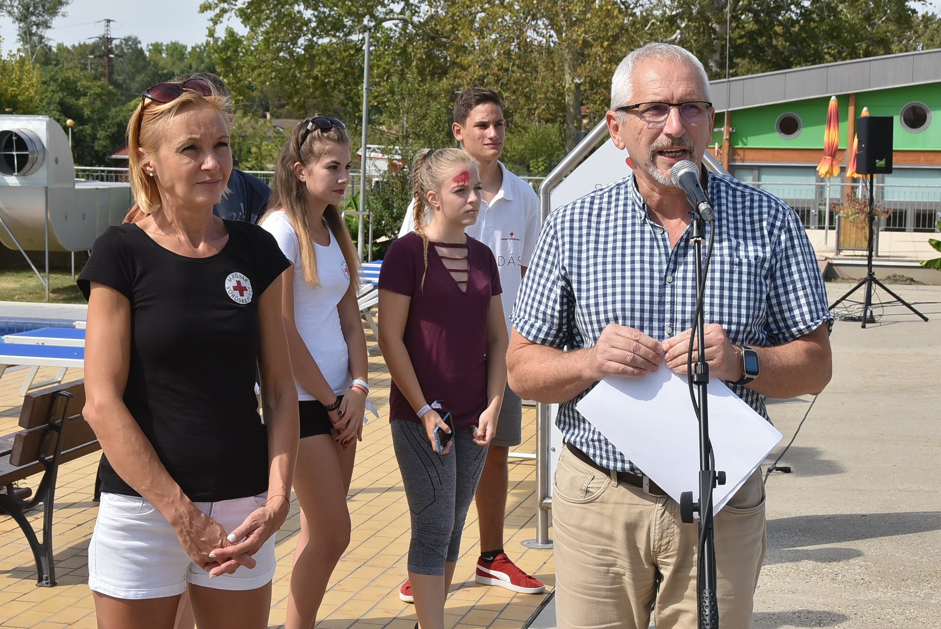 Zsura Zoltán a strand műszaki vezetője elmondta, hogy most egy szimulációs program keretében egy vízből mentést láthatunk, így mindaz amit megfigyeltek a gyerekek, a való életben is így történik.