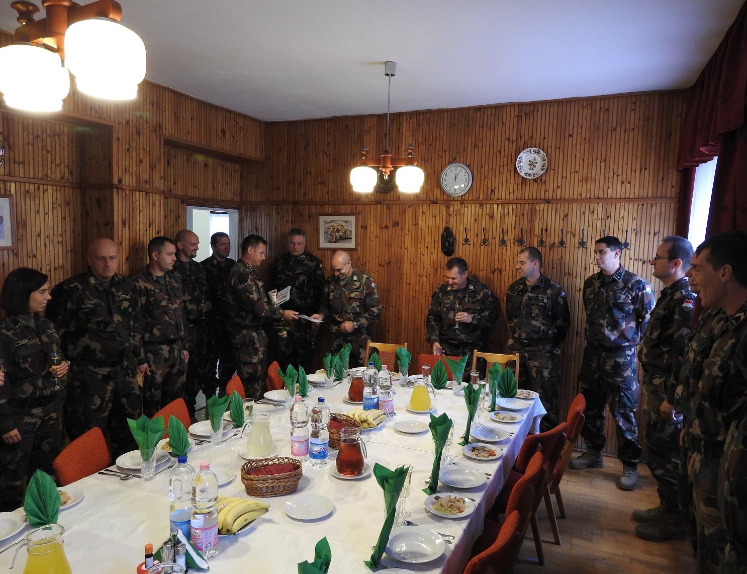 Ma sem volt ez másként, hiszen kilenc fő ünnepelt fogyasztotta el jóízűen ebédjét az ezredparancsnokukkal és közvetlen felettesével. ”Nem a múló időt kell ünnepelni, hanem dicsőséget szerezni annak, ami még előttünk áll.” Mindenkinek nagyon boldog születésnapot kívánunk!