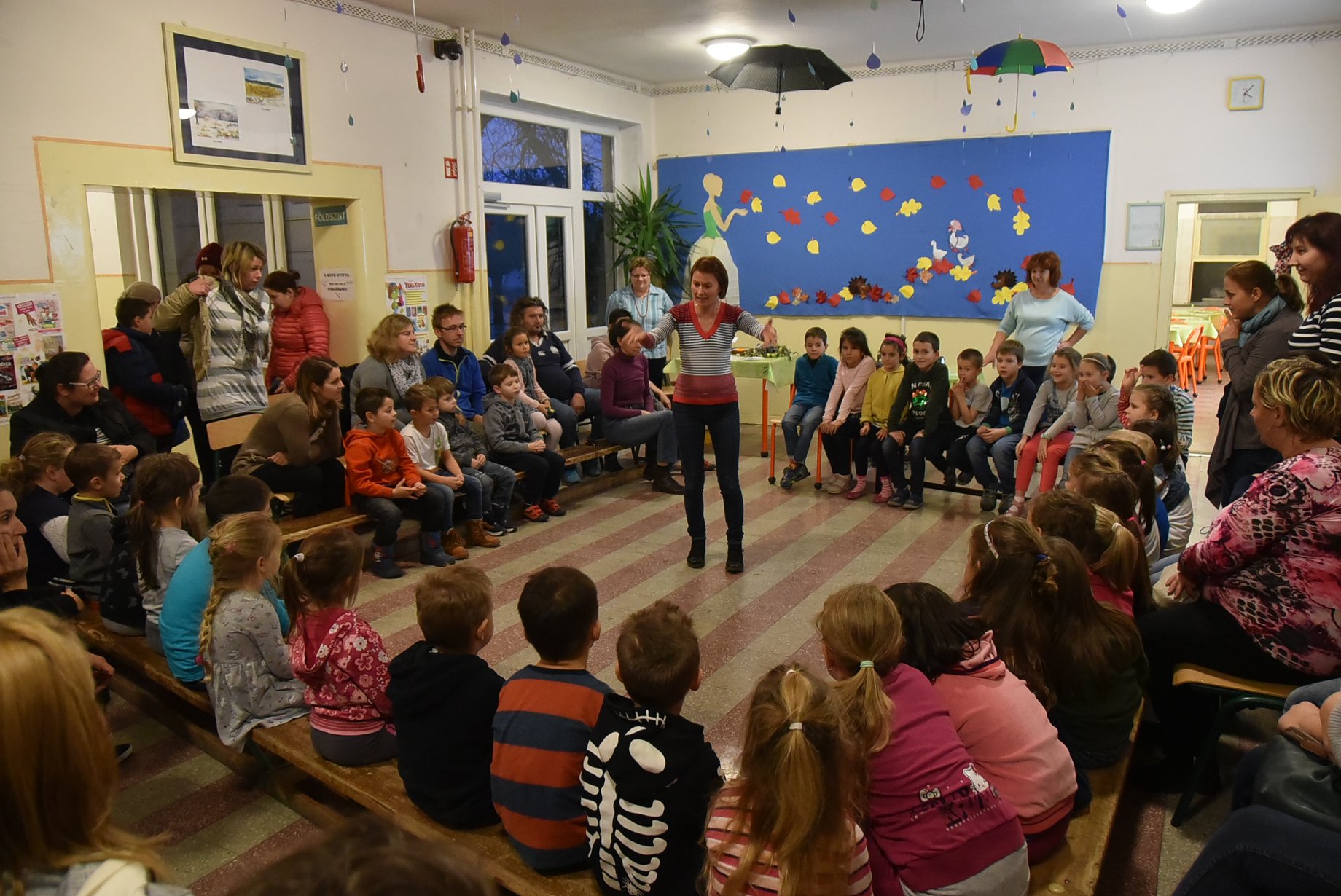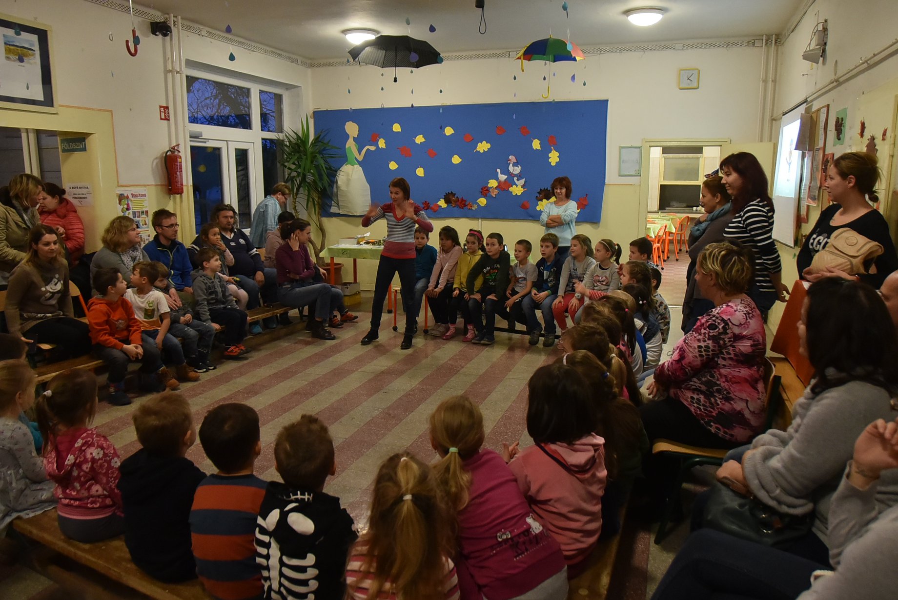 Az első klubfoglalkozást november 20-án tartották, melynek címe „Colourful Autumn and Happy Halloween” volt. Az ovis gyermekek játékok során tanultak az őszi természetről, az időjárásról, színes levelekké változtak, táncoltak a szélben, utánozták az esőcseppek hangját, játszottak a színekkel, énekeltek a szivárványról, majd a saját maguk készítette pók bábbal játszották el az Incy-wincy spider történetét. Természetesen mindezt angol nyelven! A klubdélután egy vidám Halloween-i dallal zárult. A játékok során nagy segítség volt az elsős Deákos diákok közreműködése is, akik nagy szeretettel várták a kicsi ovisokat.