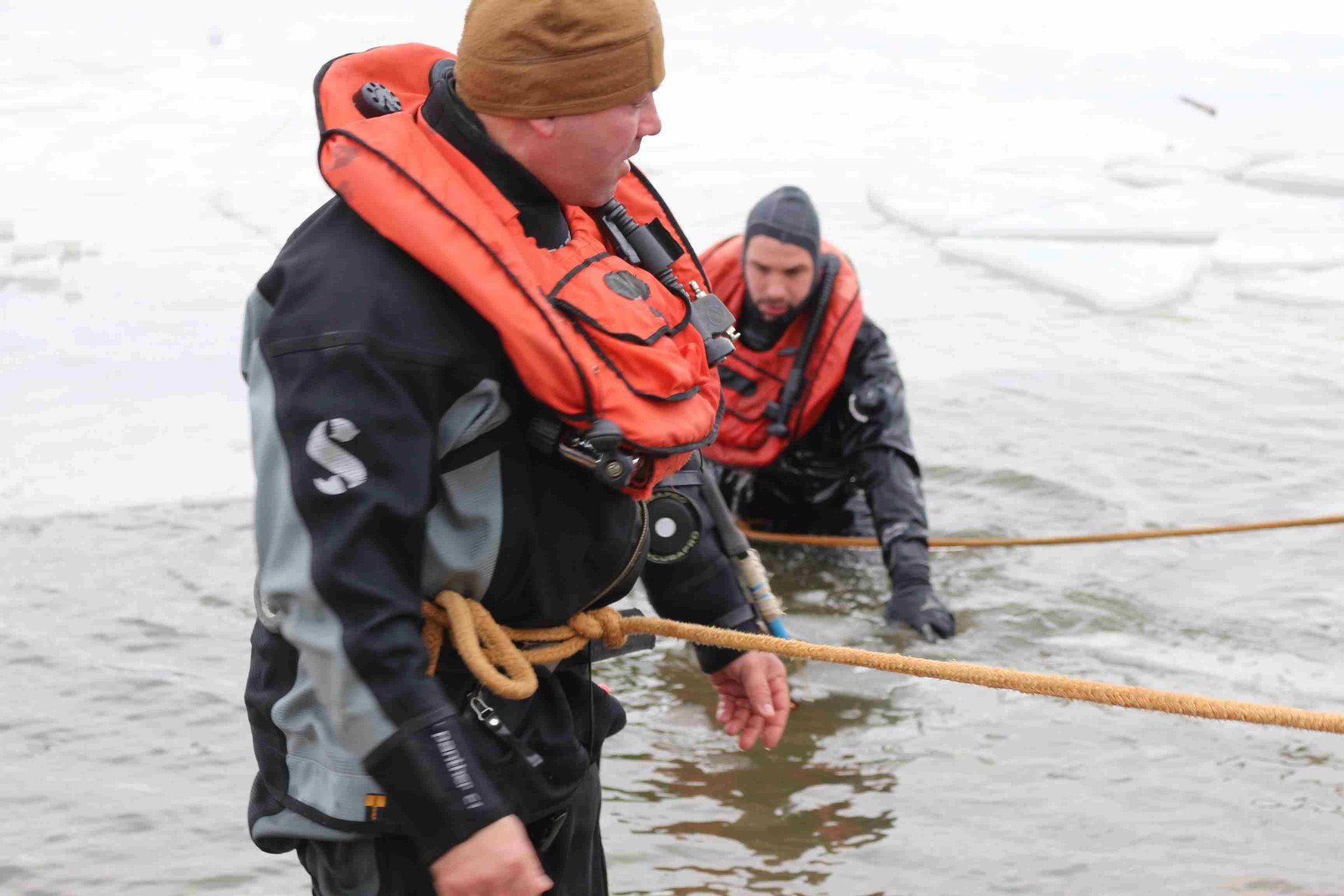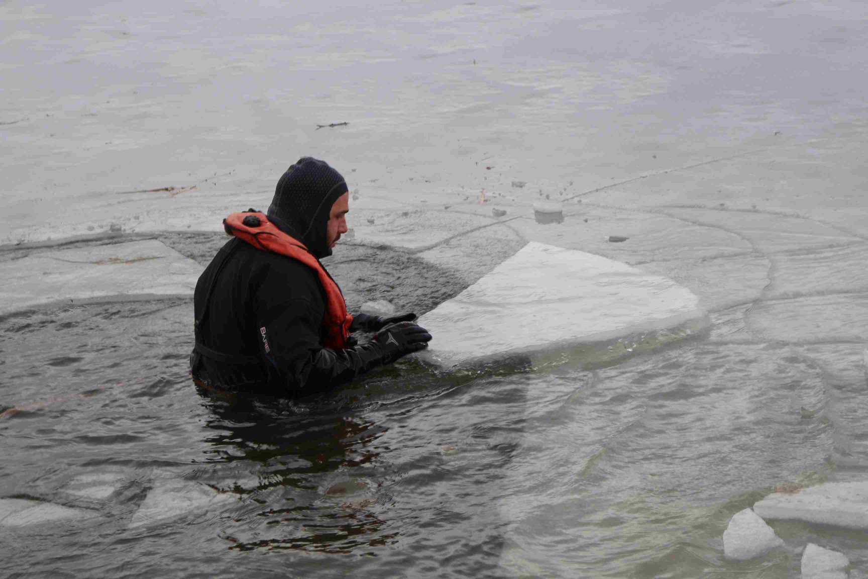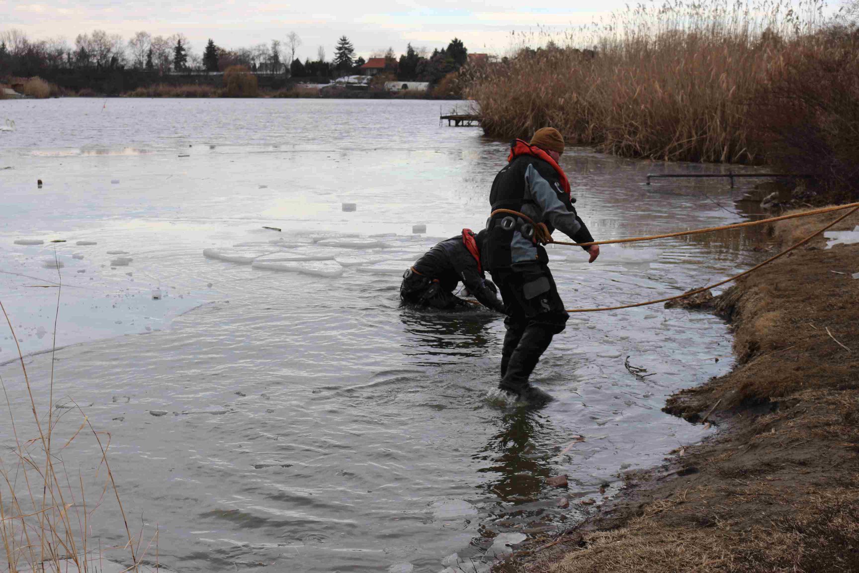 A búvárok közül Baranyai István őrnagy vállalta a bajba jutott személy szerepét a tűzoltók mentési feladatánál, ezért lassan leereszkedett az erre a célra vágott lékbe, hogy „megmenthessék”. Az olvadó jég felszíne további kihívások elé állította a tűzoltókat is. Végül a bajba jutott embert a légtömlőkkel megerősített tűzoltó létrán biztonságosan elérték és kimentették.