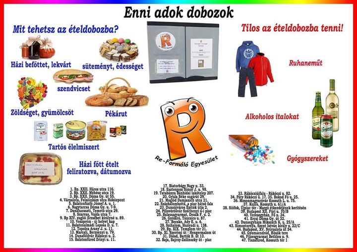 Az Enni adok ételdoboz egy 65x59x39 cm-es szekrény, amely műanyagból készült fém megerősítésekkel. A szekrény vízálló és UV védett anyagból készült – olvasható a Re-Formáló Egyesület honlapján, mely egyesület a holnapi napon helyezi ki a szentesi Enni Adok Ételdobozt.