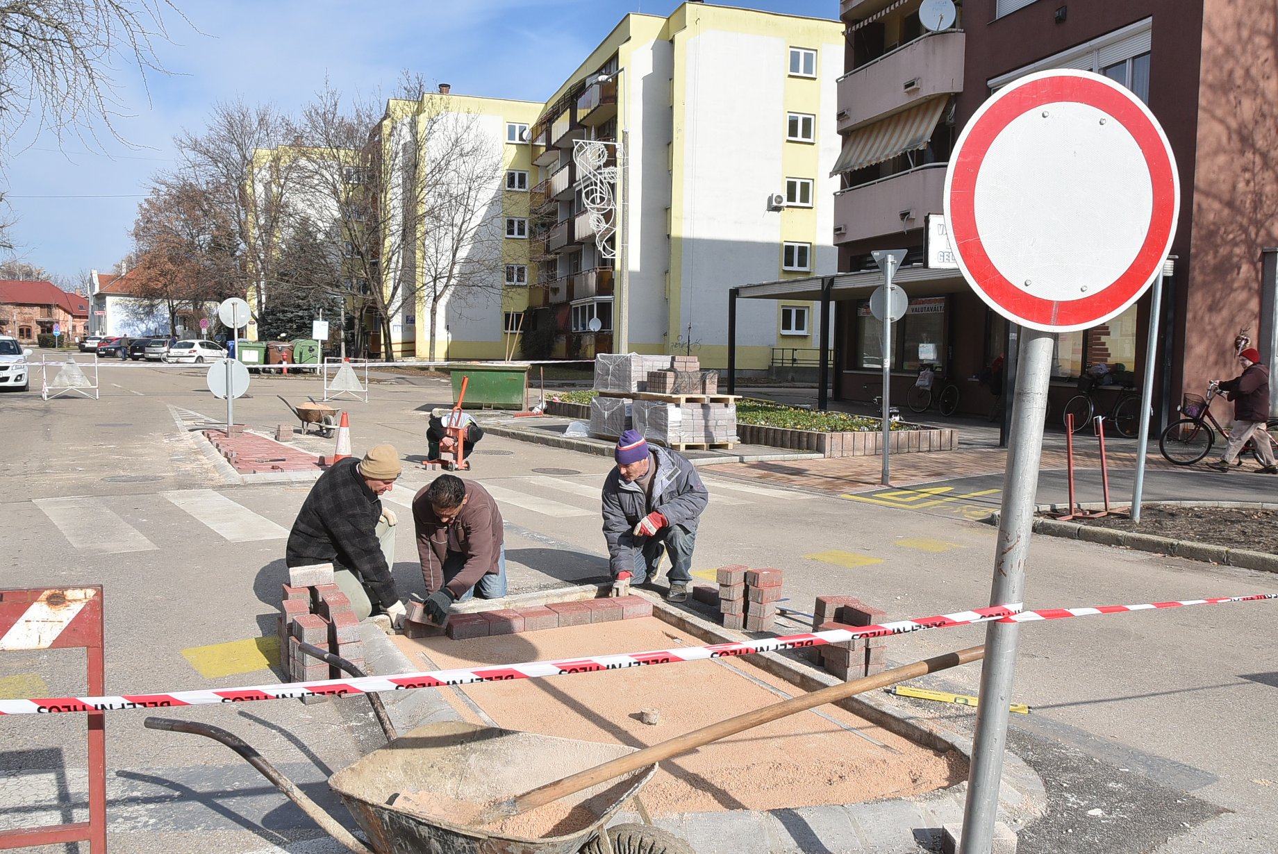 Értesítjük a tisztelt közlekedőket, hogy 2019. február 18-án (hétfőtől) megkezdik a Szentes, Kossuth L. – Horváth M. – József A. utcai csomópontban kiépített „Kettős mini körforgalom” befejező burkolási munkáit.