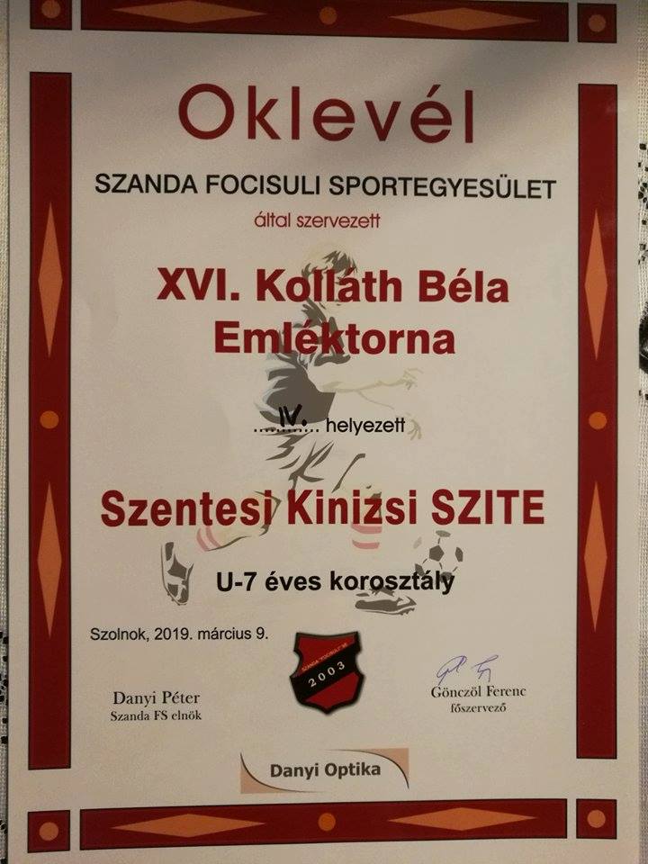 A Szászbereken megrendezett XVI. Kolláth Béla Emléktornán, a Szentesi Kinizsi SZITE U7 csapata három gyerek részvételével a torna 16 résztvevő csapatából a 4. helyét vívta ki magának.