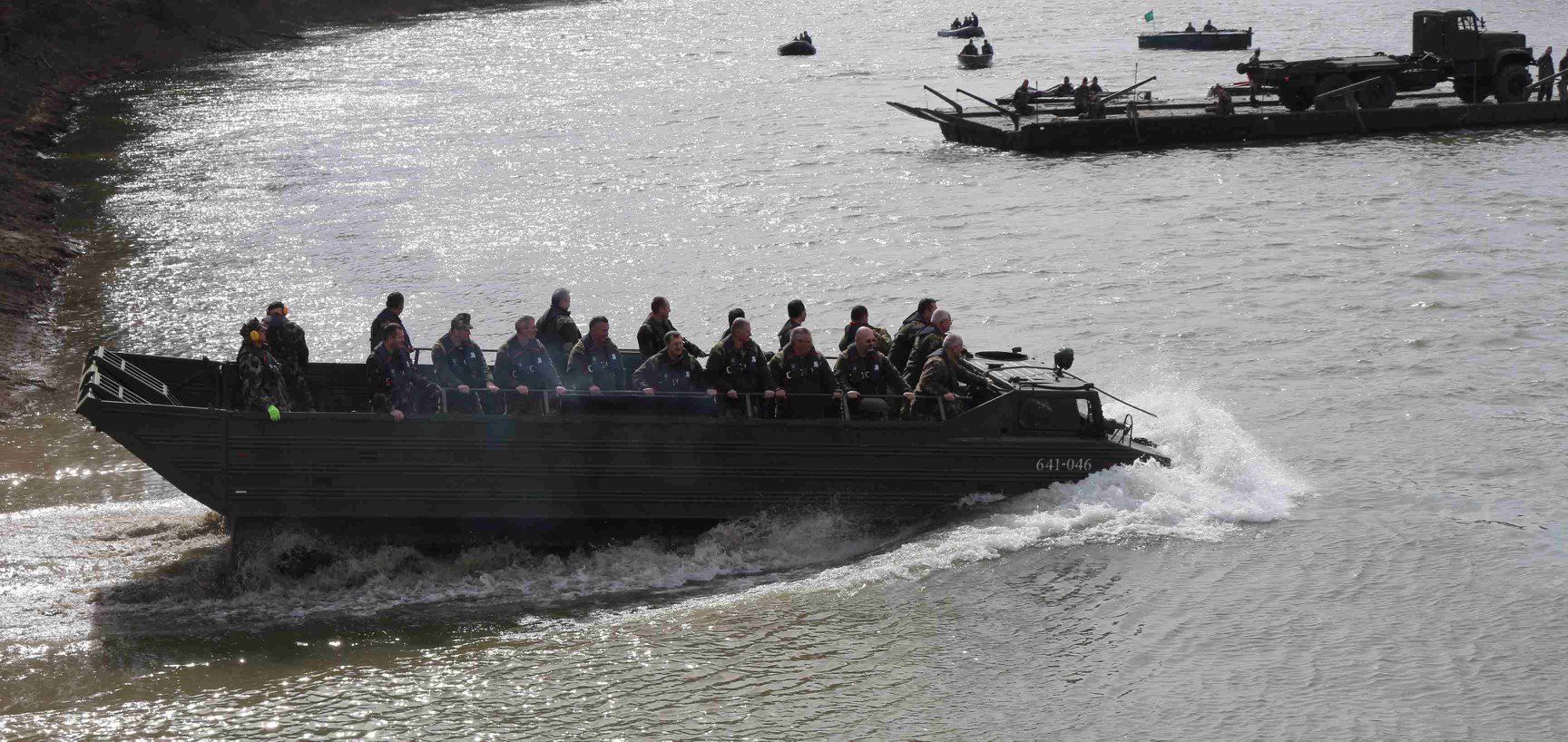 A parancsnoki tájékoztatót követően a hallgatók részt vettek a tiszai gyakorlótéren a Hídépítő Zászlóalj átkelés kiképzési foglalkozásán, ahol a katonák éppen a kompok vízre tételét és a kompelemek összekapcsolását gyakorolták. A látogatók kipróbálhatták a deszantolást egy PTSZ-M lánctalpas úszó gépkocsi fedélzetén is.