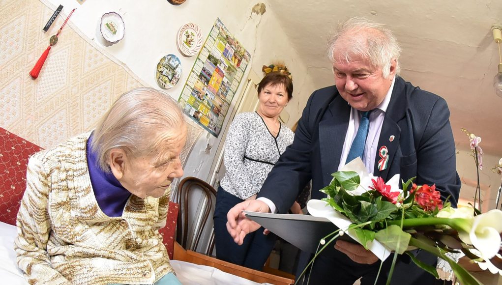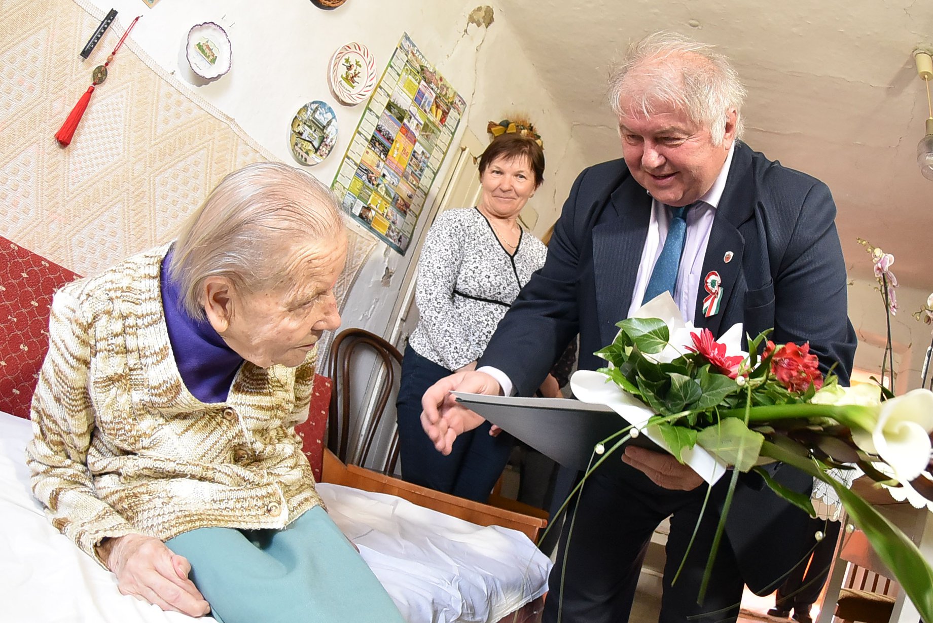1929. március 14-én 90 esztendővel ezelőtt született Szabó Józsefné, Erzsike néni. E jeles alkalomból érkezett hozzá Szirbik Imre polgármester, hogy köszöntse a város nevében szépkorúsága alkalmából.