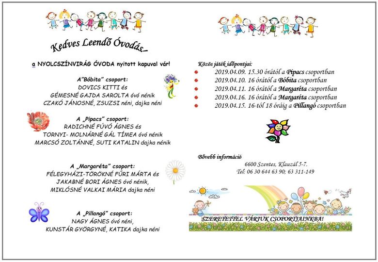 2019.04.10. 16 órától a Bóbita csoportban