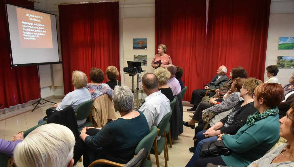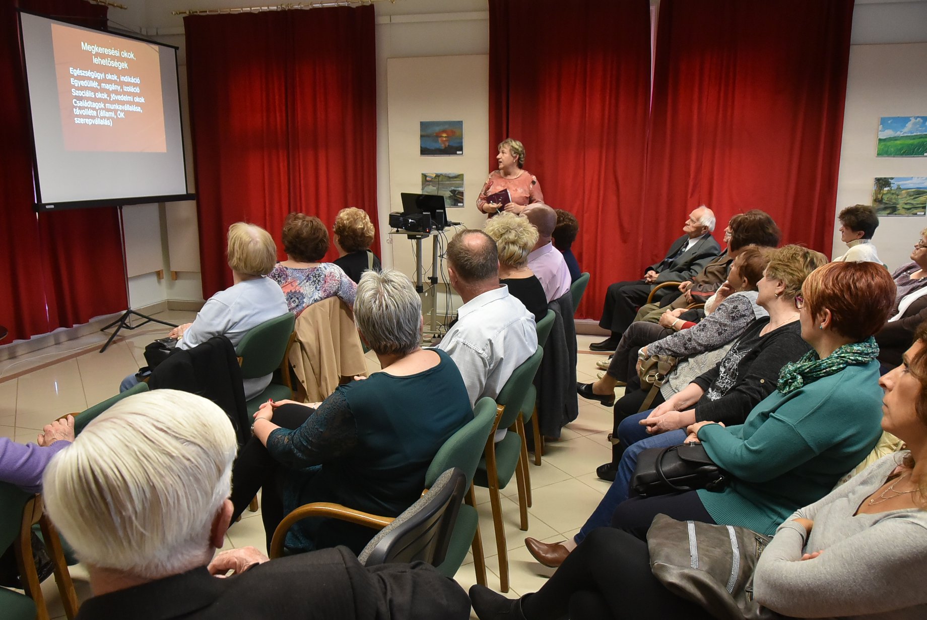 2019. március 27-én a Szentes Városi Könyvtárban „Az idősellátás kihívásai napjainkban” összegfoglaló címmel 3 előadót hallgathatott meg a népes közönség: