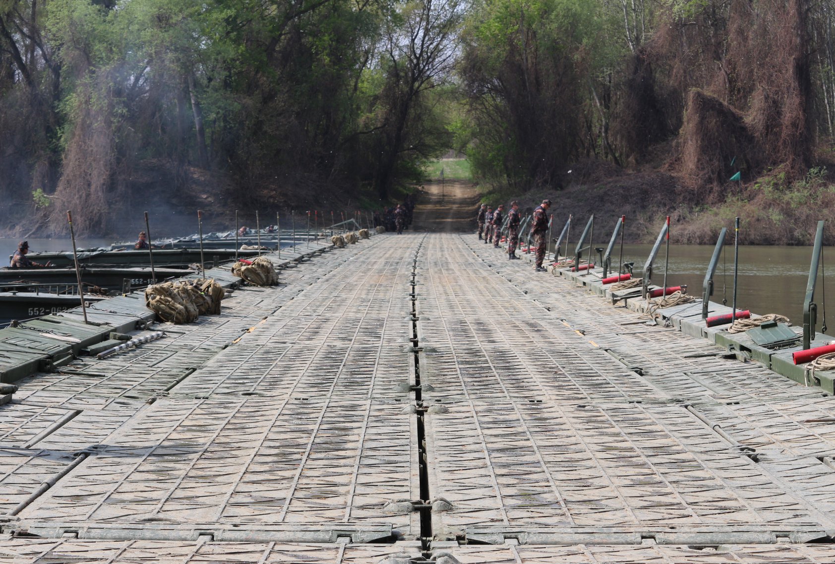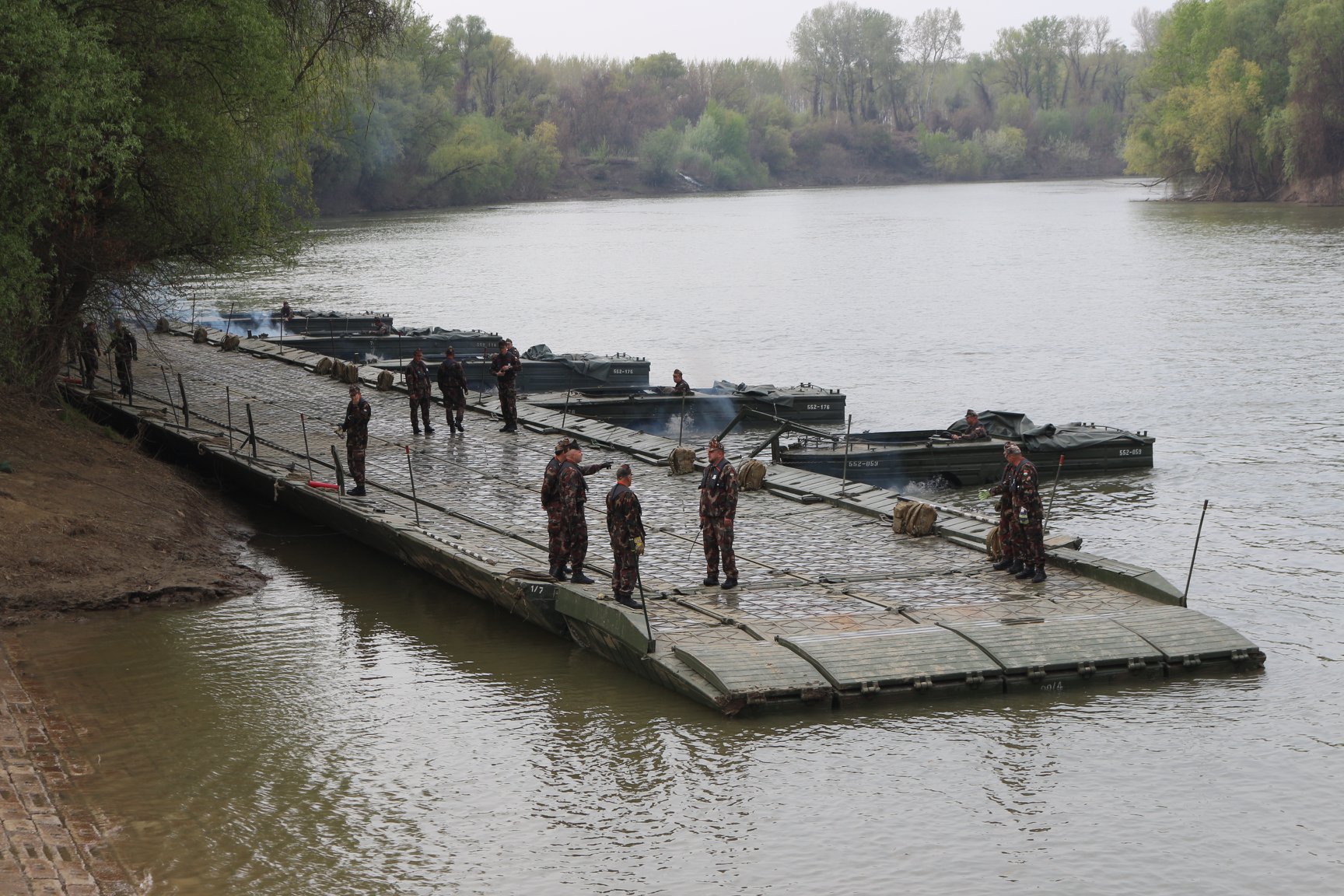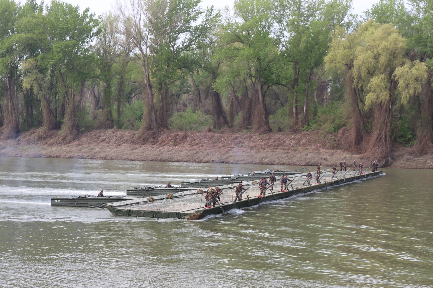A zászlóalj katonái már harmadik hete gyakorolják a vízi átkelés mozzanatait az alakulat Tisza parti gyakorlóterén, ahol a „vízenjárástól” (közismertebb nevén az evezős csónakkal való közlekedéstől) mostanra eljutottak a pontonelemek összekapcsolásán keresztül a komplett átkelésig, amikor is a folyót teljes szélességében áthidalták.