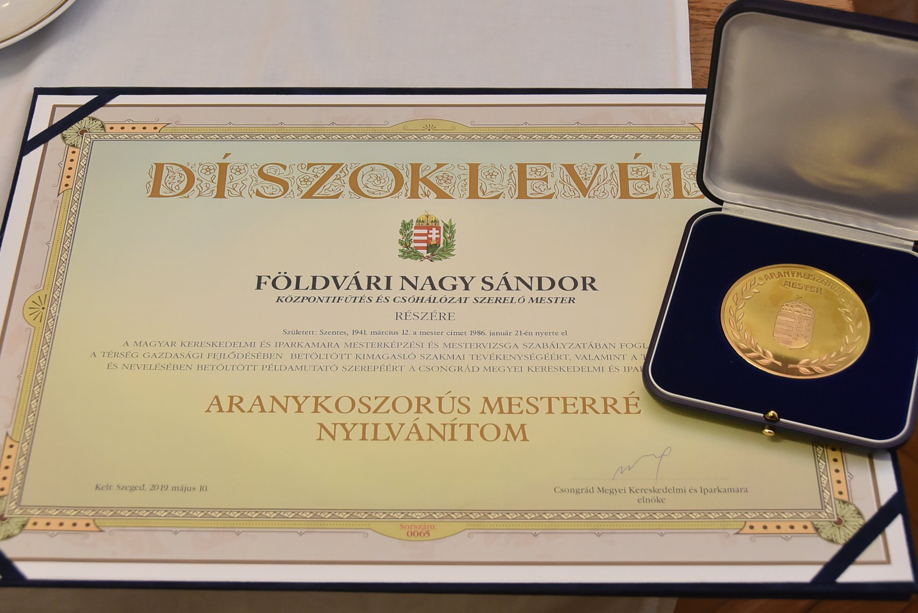 A kitüntetettek sora között ott volt Szentesről Földvári Nagy Sándor központifűtés- és csőhálózat-szerelő mester is, mert több mint 30 éves szakmai múlttal rendelkezik.