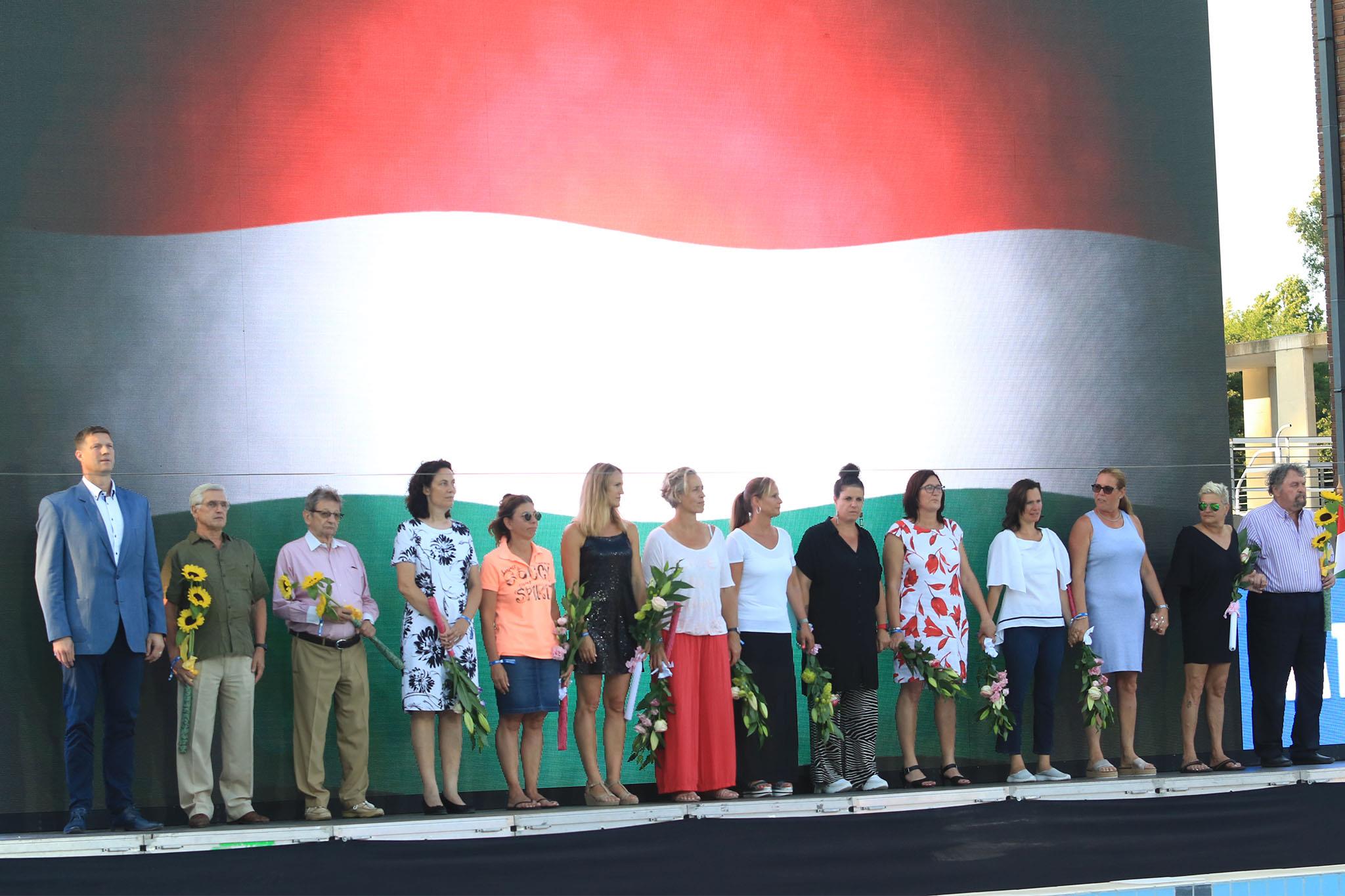 A Magyarország – Hollandia ma esti Hajós Alfréd Sportuszodában megrendezett női vízilabda-mérkőzés előtt a 25 éve 1994-ben, Rómában világbajnoki győzelmet arató világbajnok lett magyar női nemzeti együttest köszöntötték, amelynek a szentesi Tóth Gyula volt a szövetségi kapitánya, de több Kurca-parti játékos is volt a keretben.