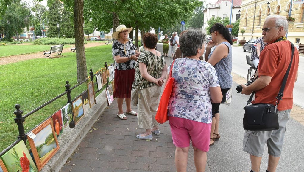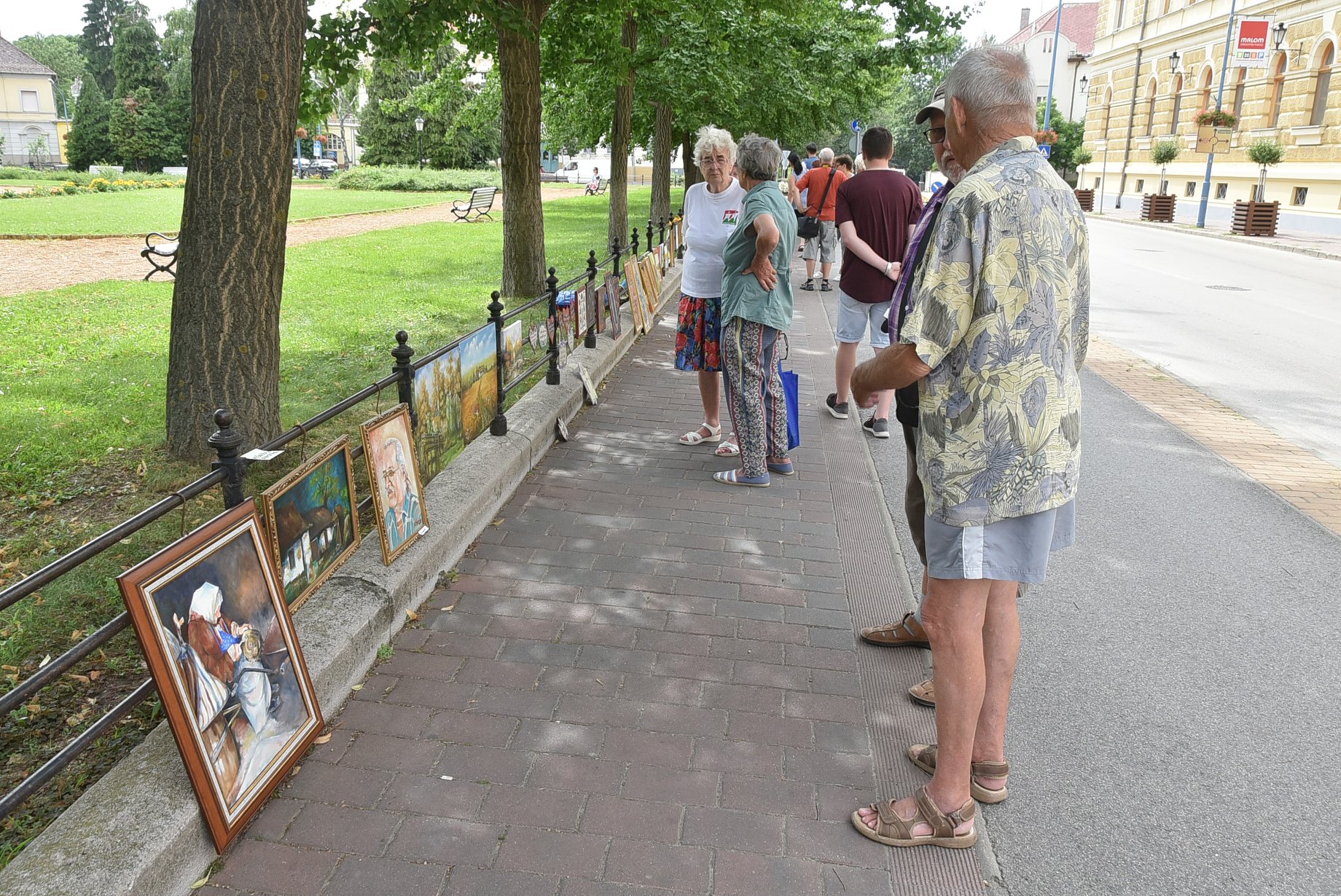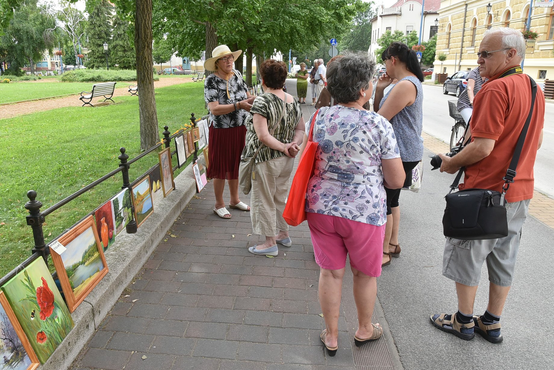 A Szentesi Ecsetforgatók festőtáborának zárásaként szabadtéri kiállítást szerveztek 2019. július 4-én csütörtökön 15.30 és 17.30 között az Erzsébet tér Kossuth utcai utcafrontján.