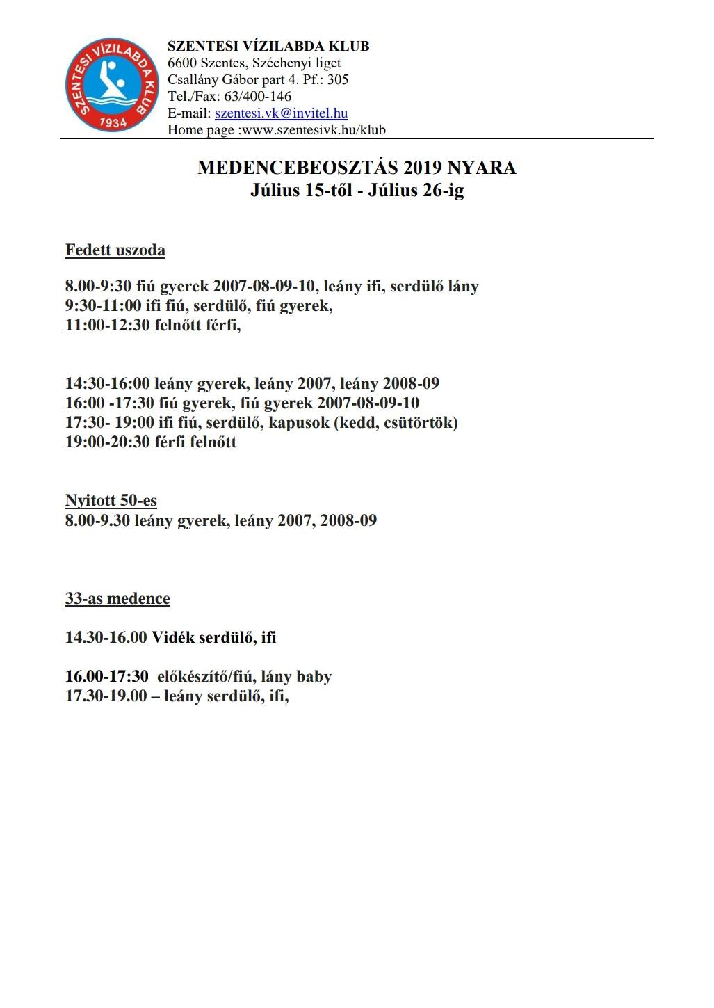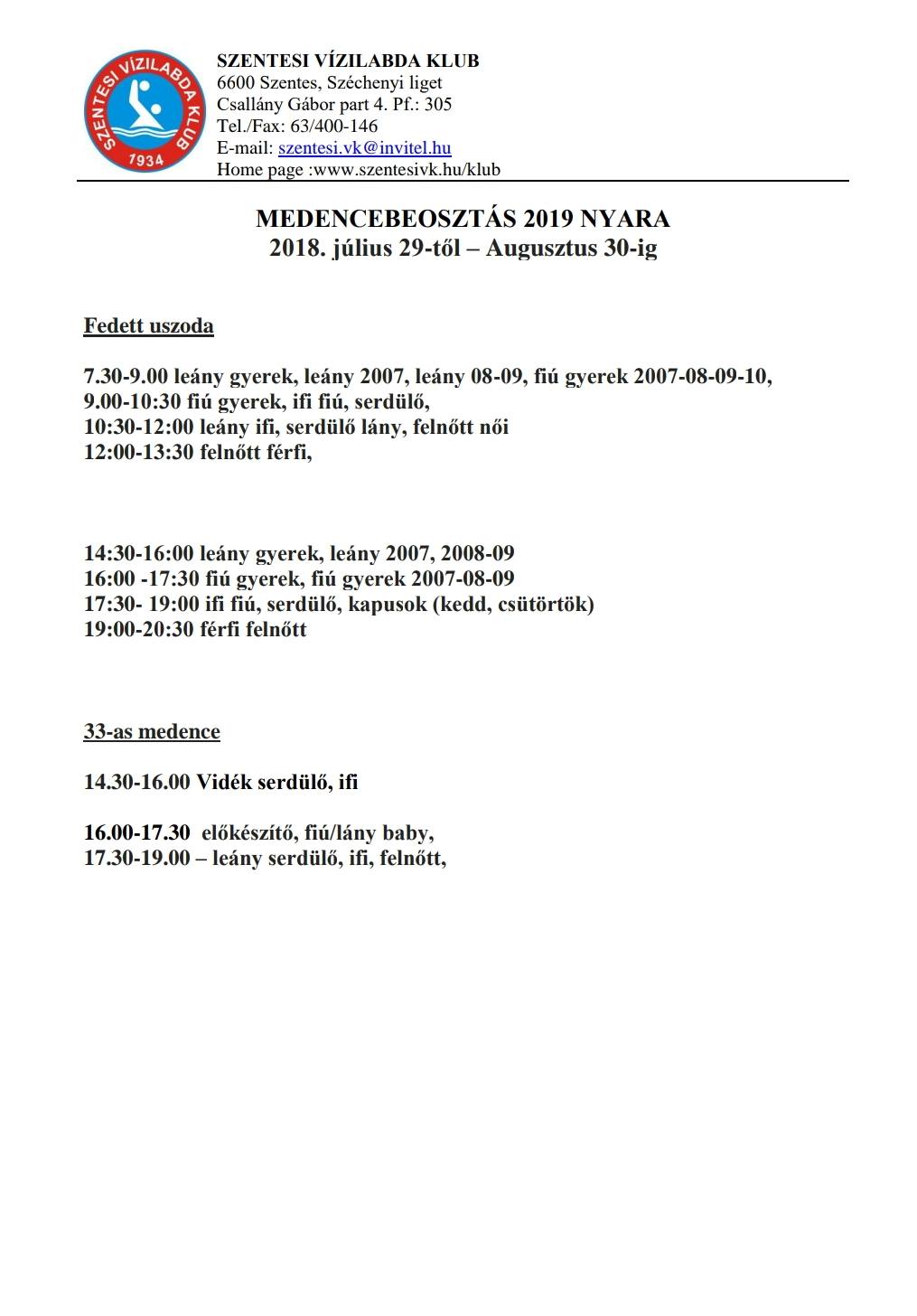 Kezdőlap Szentesi VK A játékosok edzései a következőképpen alakulnak a nyári időszakban:…